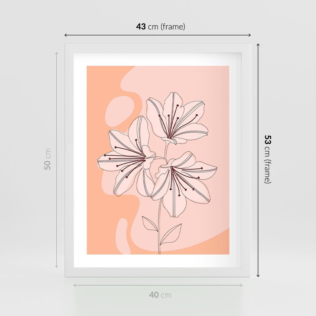 Plakat w ramie 40x50 - Kwiatowa Harmonia - minimalistyczny plakat, pudrowe kwiaty - rama biała