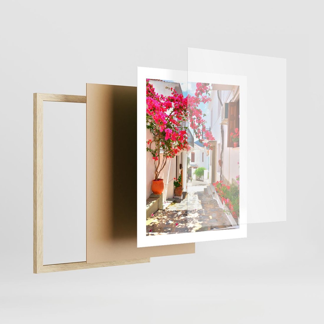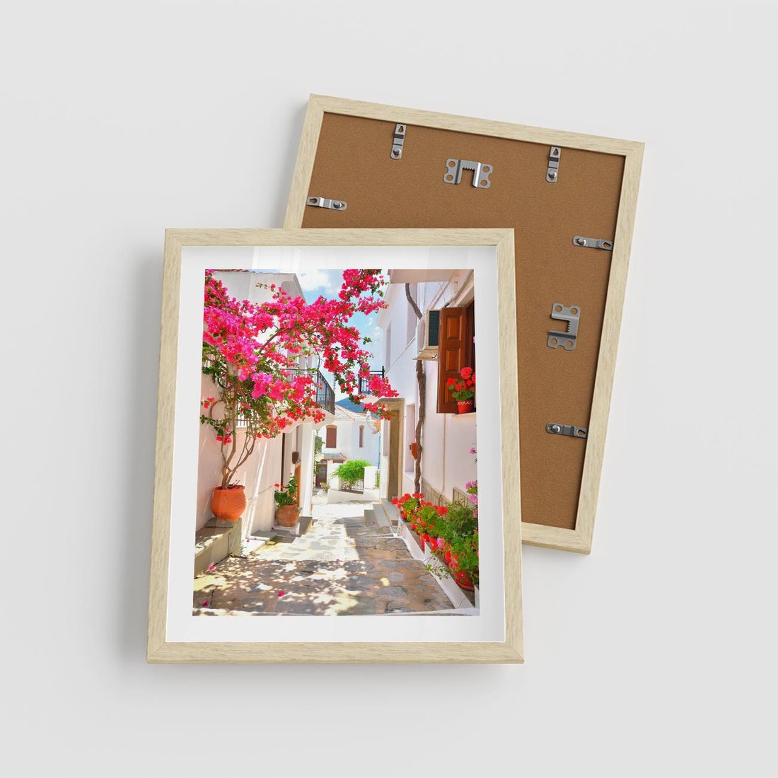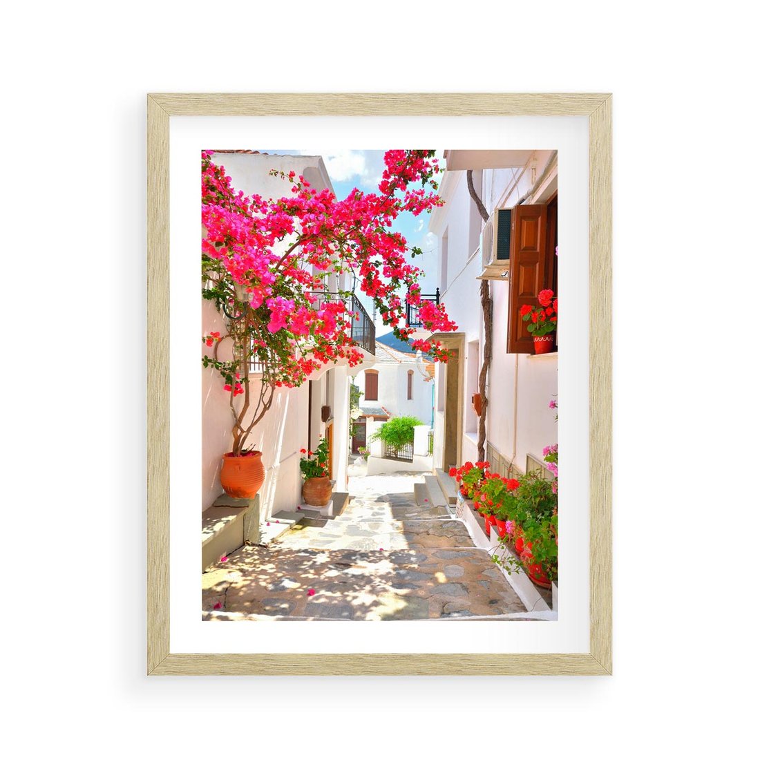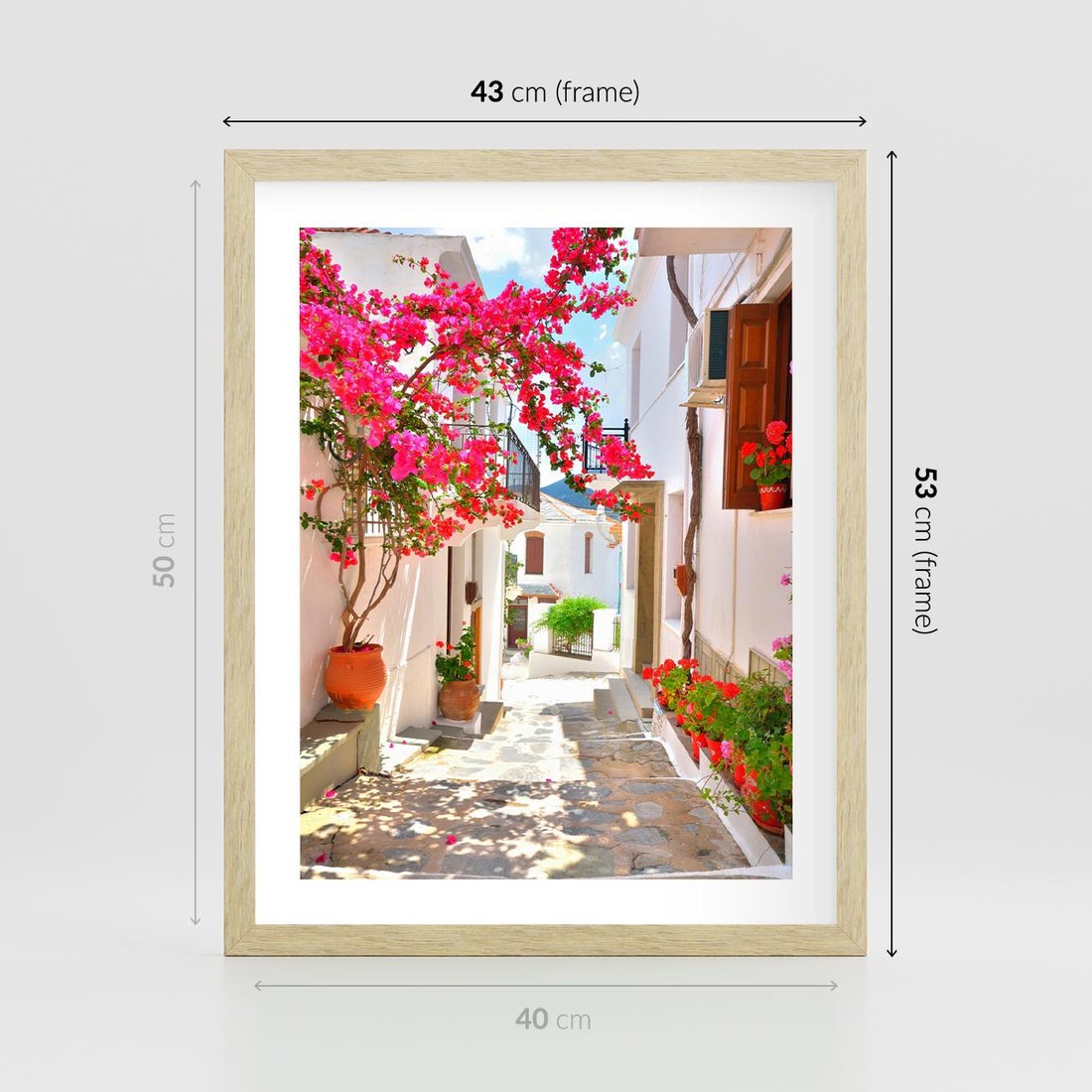 Plakat w ramie 40x50 - Kwiatowa uliczka wakacji - kwiaty, uliczka - rama drewno