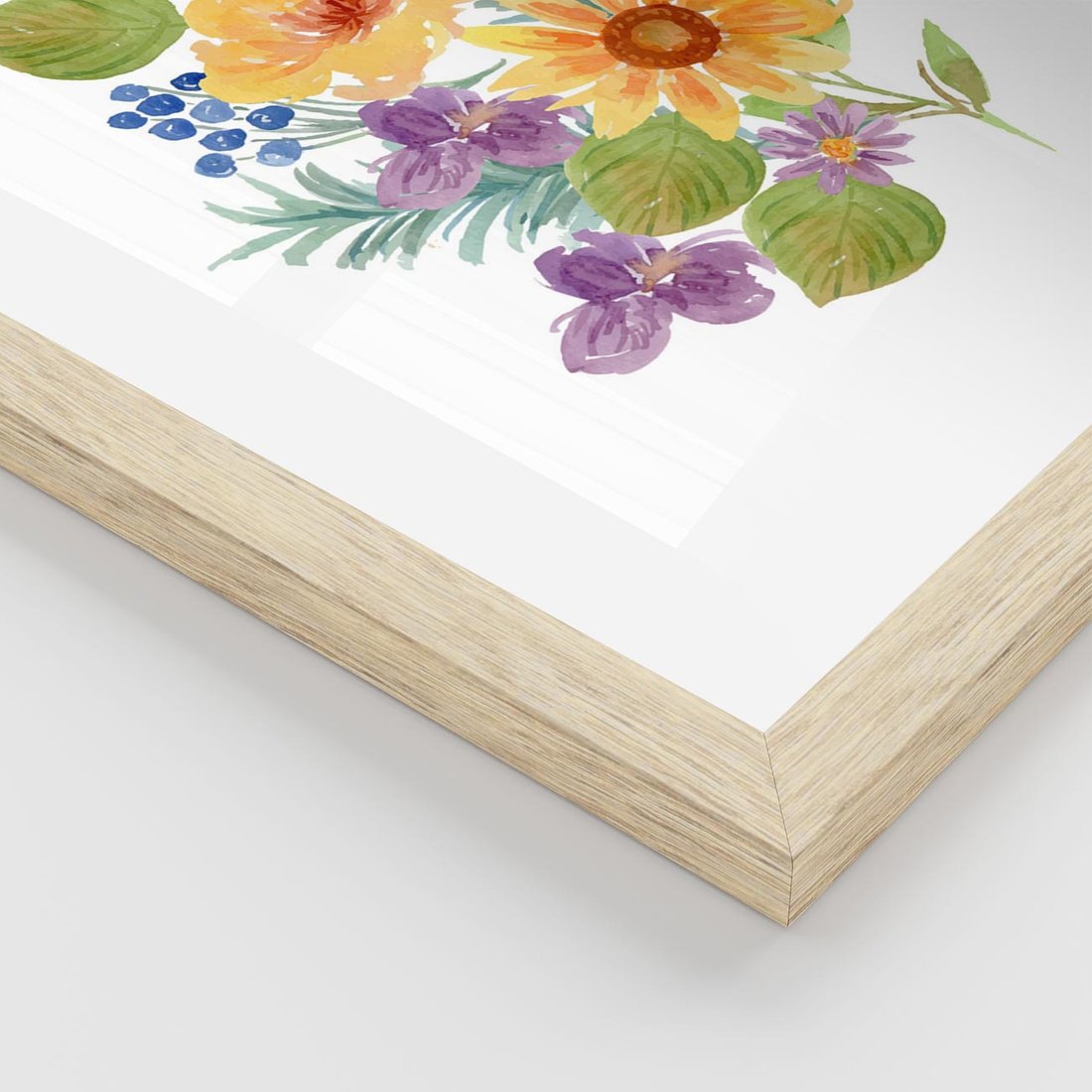 Plakat w ramie 40x50 - Kwiatowe Inspiracje - akwarelowe polne kwiaty, minimalistyczny plakat - rama drewno