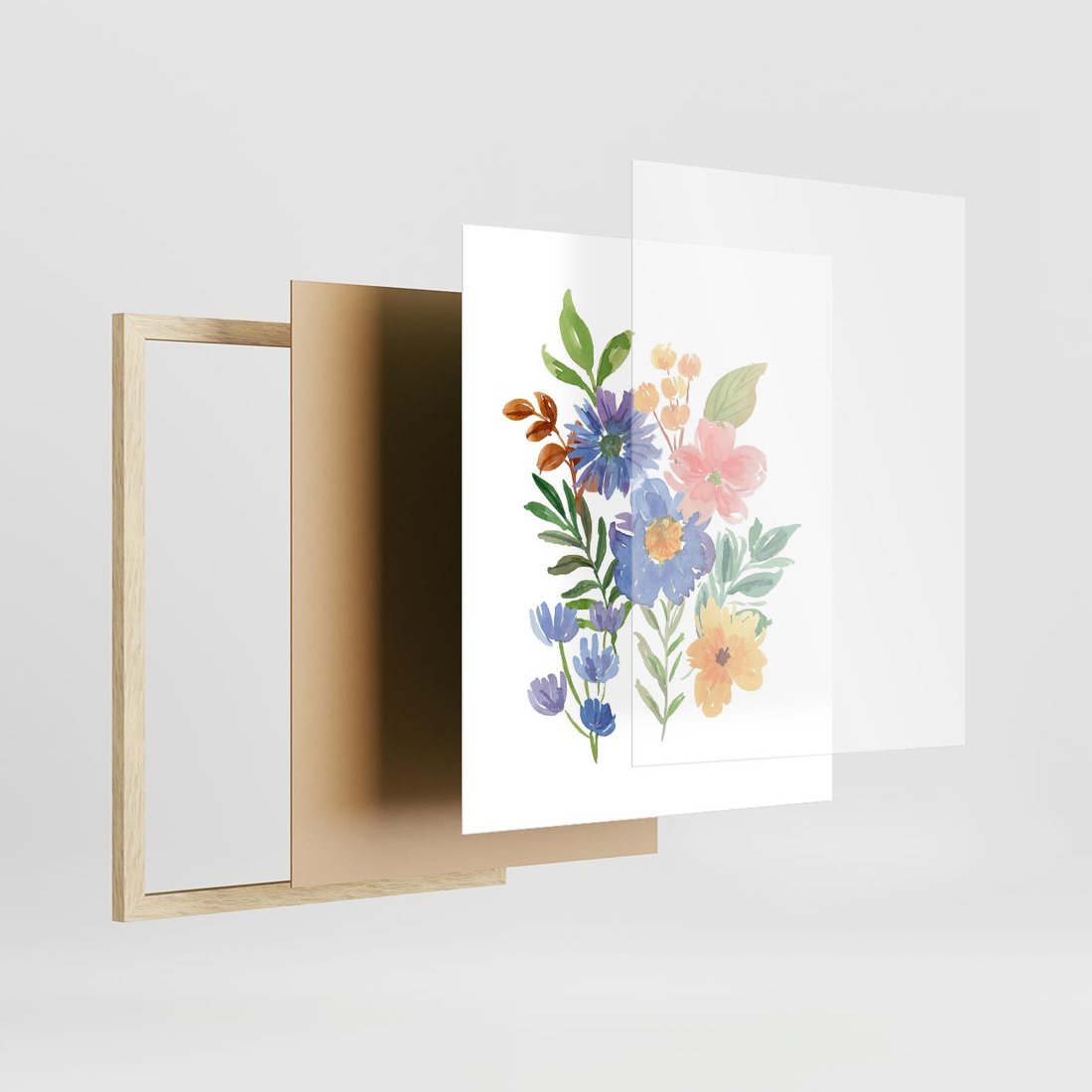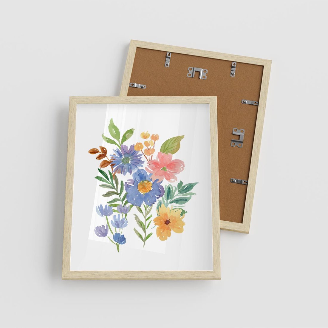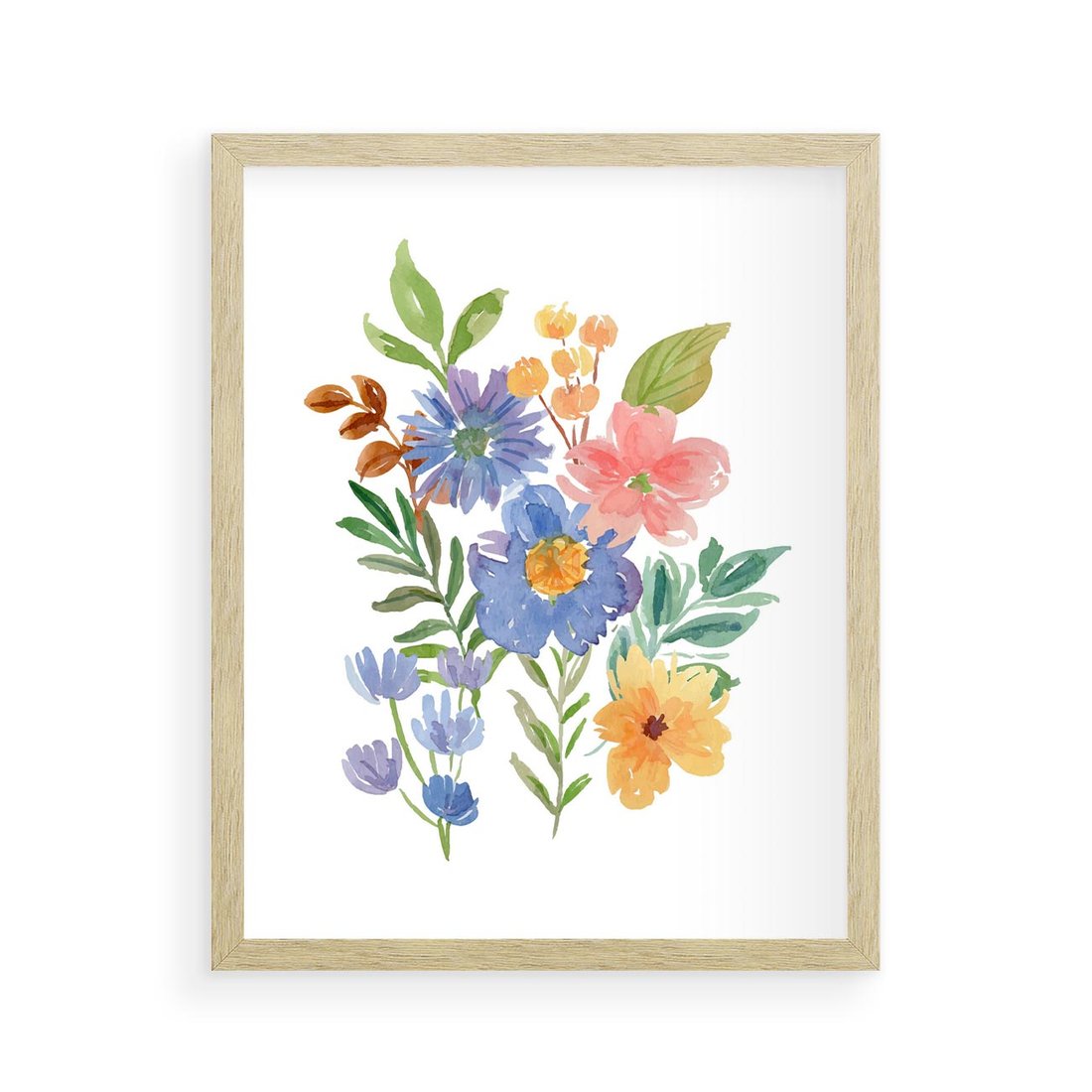 Plakat w ramie 40x50 - Kwiatowe Opowieści - akwarelowe polne kwiaty, minimalistyczna sztuka - rama drewno