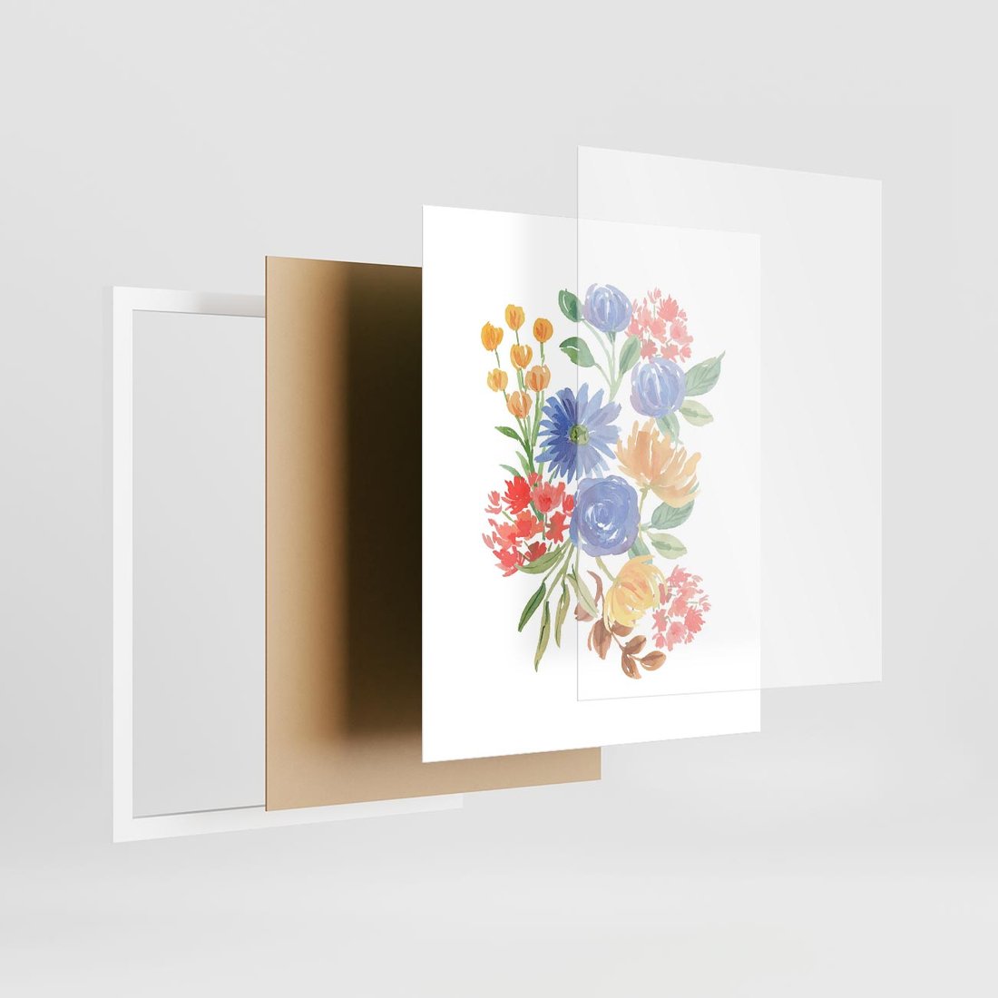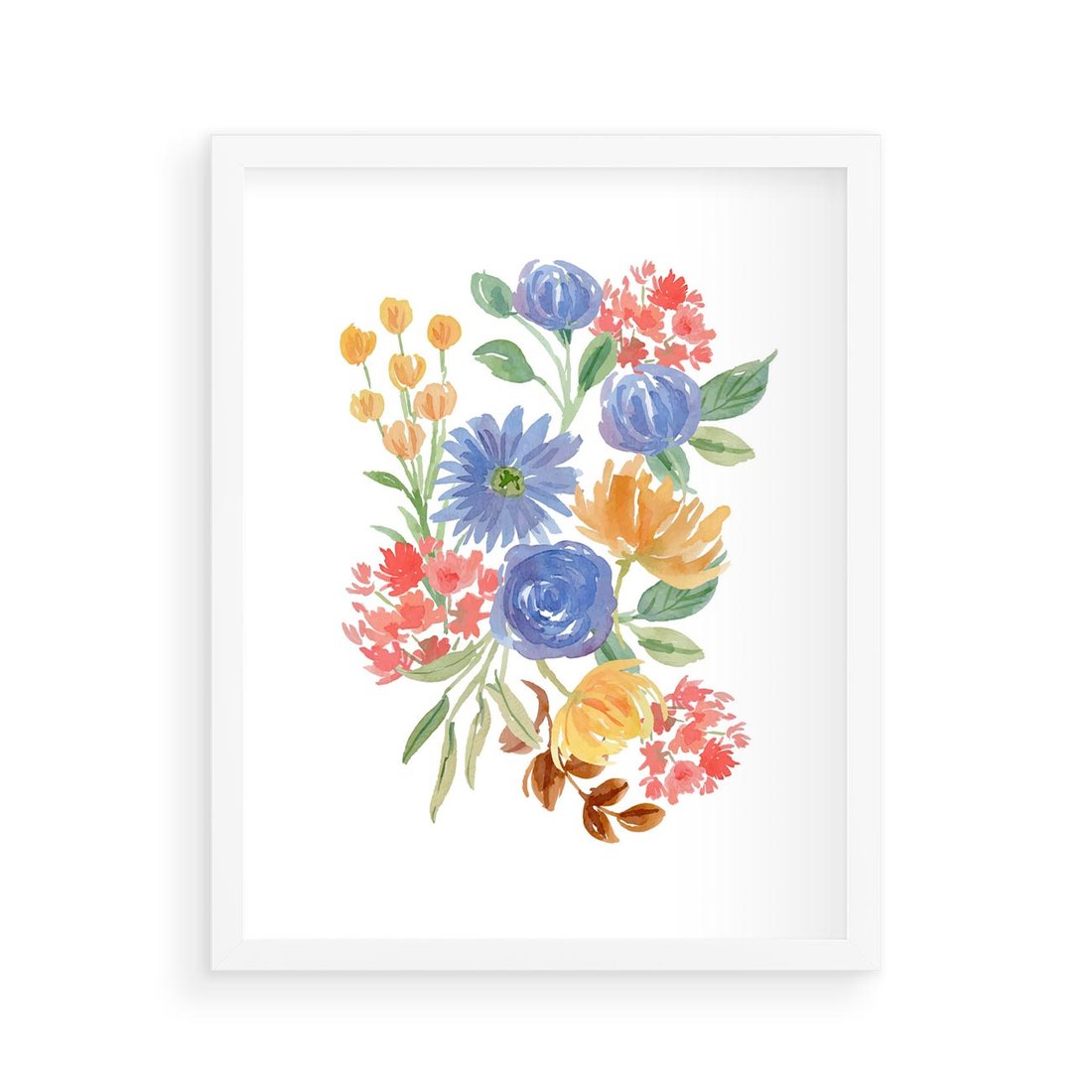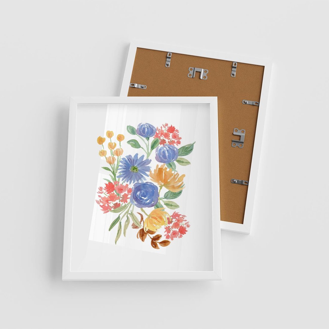 Plakat w ramie 40x50 - Kwiatowe Światło - akwarelowe kwiaty, bukiet - rama biała