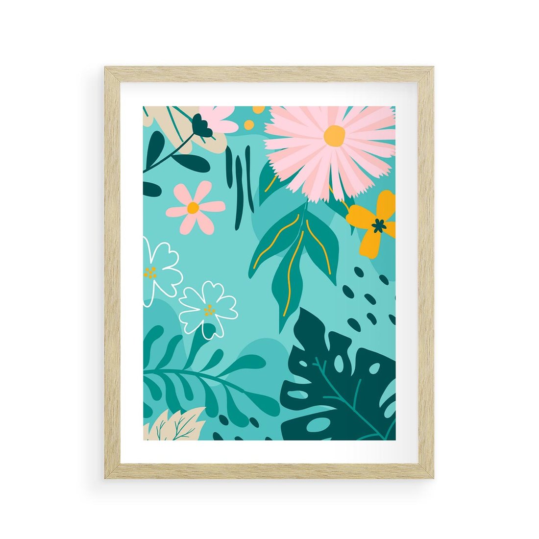Plakat w ramie 40x50 - Kwiatowe Wibracje - pastelowa kompozycja, kwiaty - rama drewno