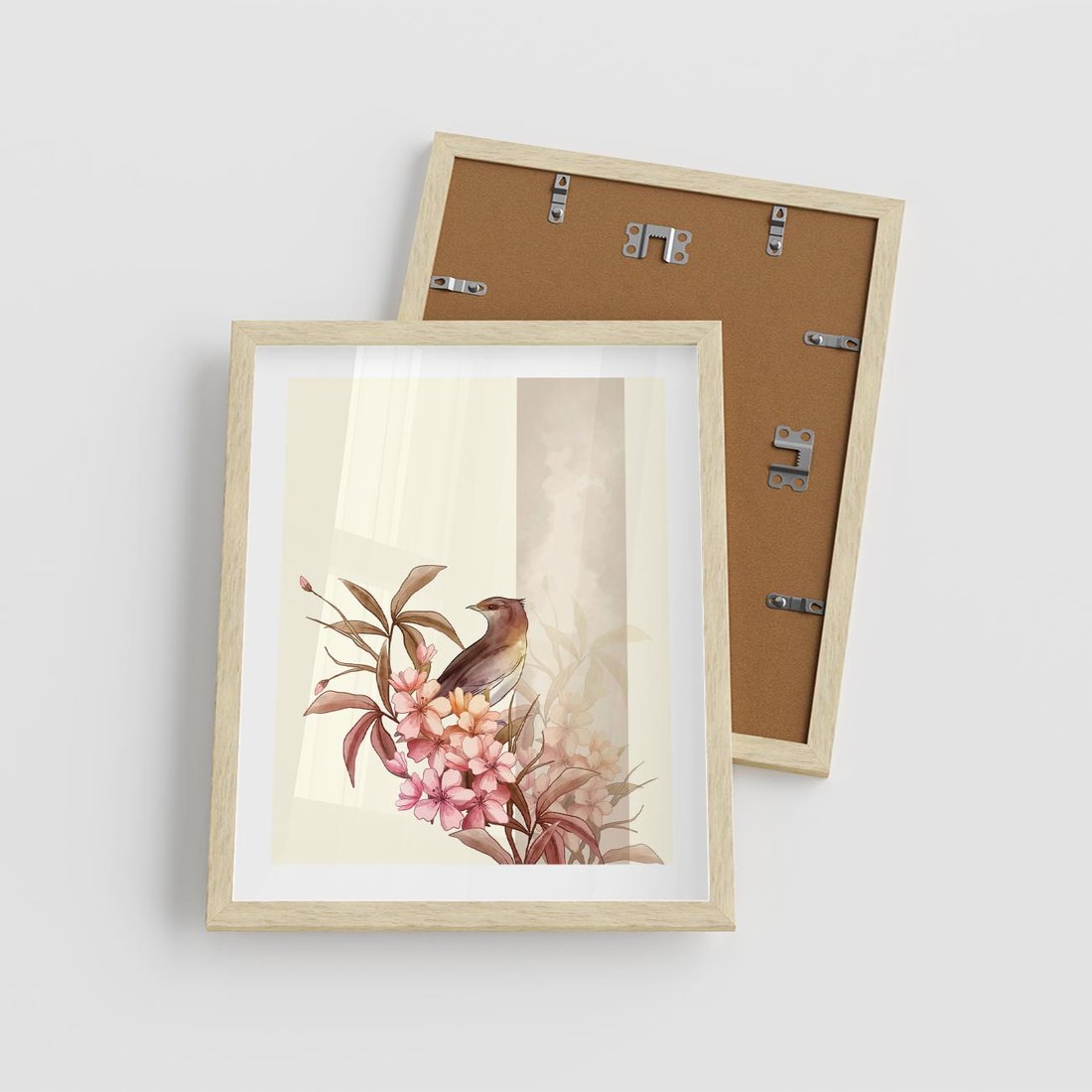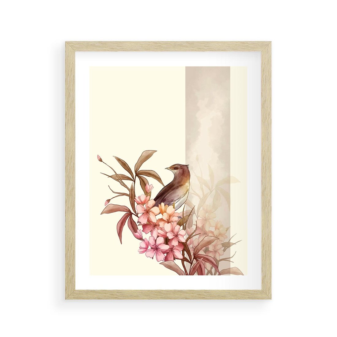 Zanurz się w japońskiej sztuce z obrazem ptaka i kwiatu wiśni. Przynieś spokój i harmonię stylu Japandi do swojego wnętrza.