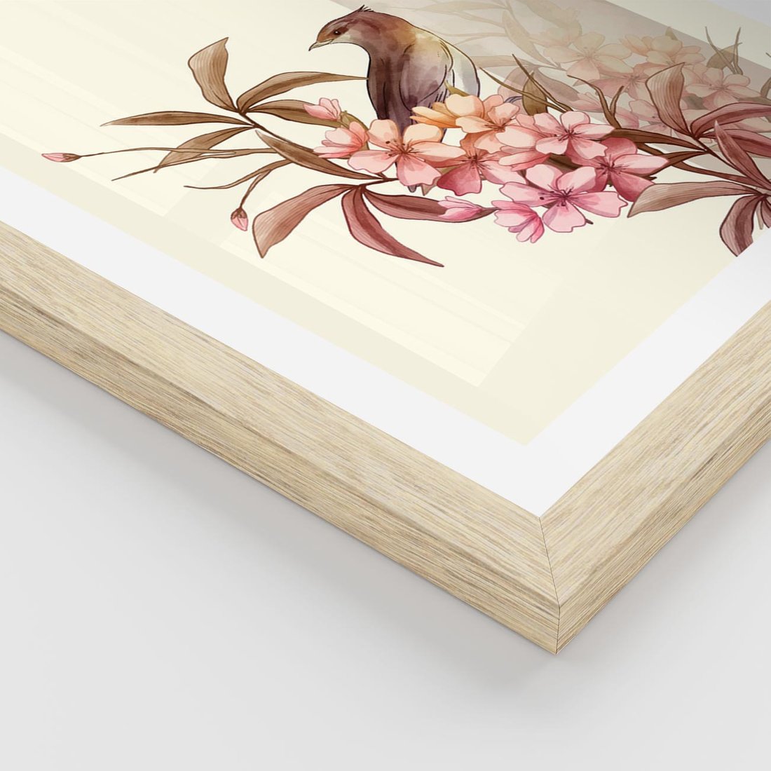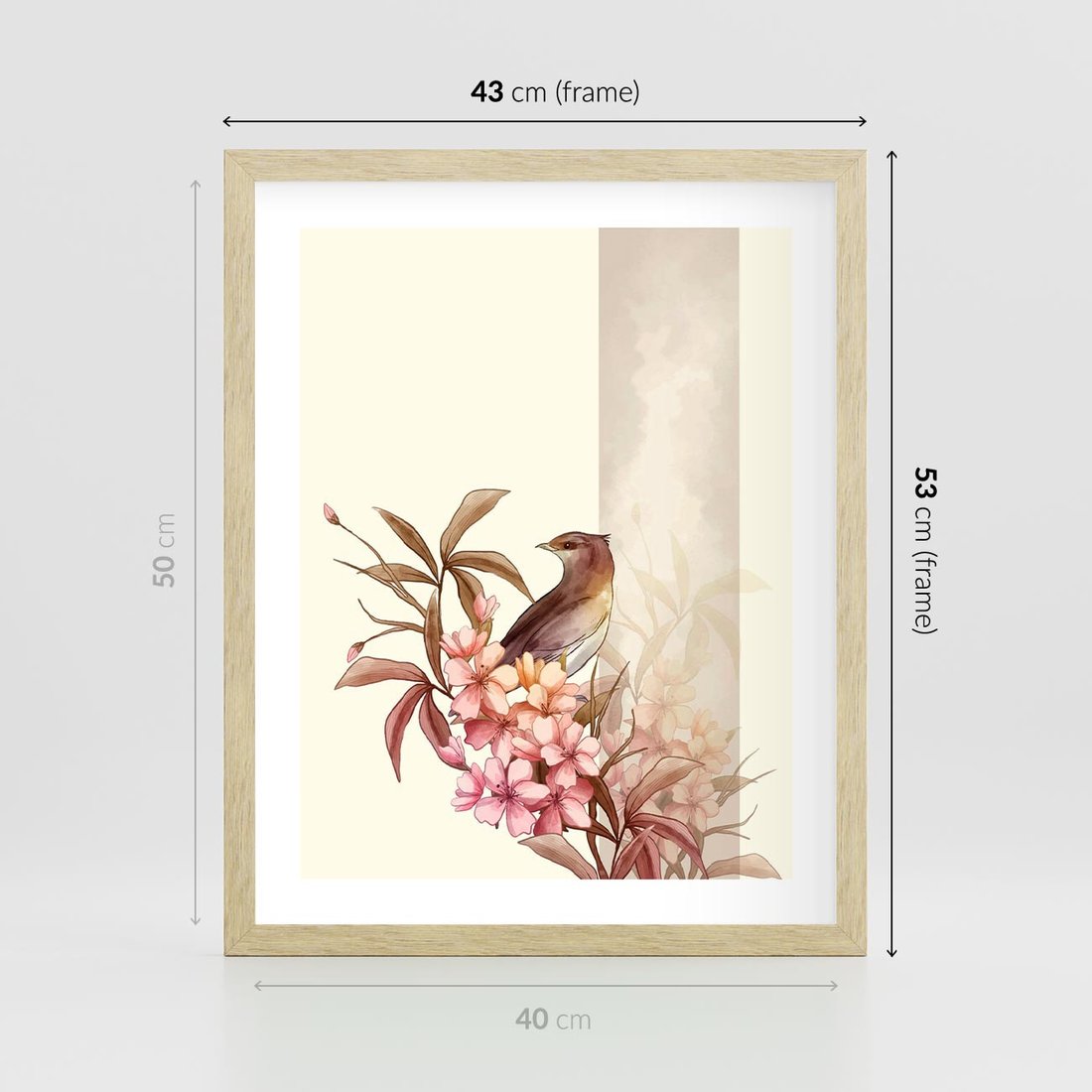 Plakat w ramie 40x50 - Kwiatowe Zanurzenie - japońska sztuka, ptak - rama drewno