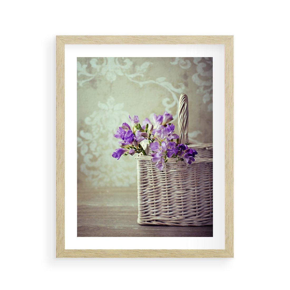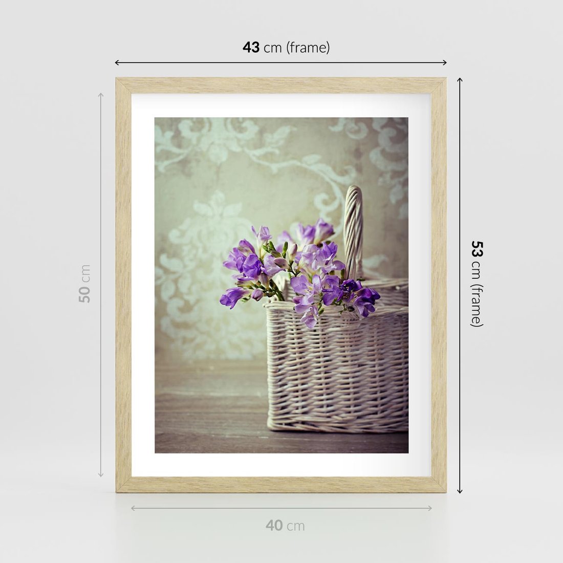 Plakat w ramie 40x50 - Kwiatowy koszyk - kwiaty, koszyk - rama drewno