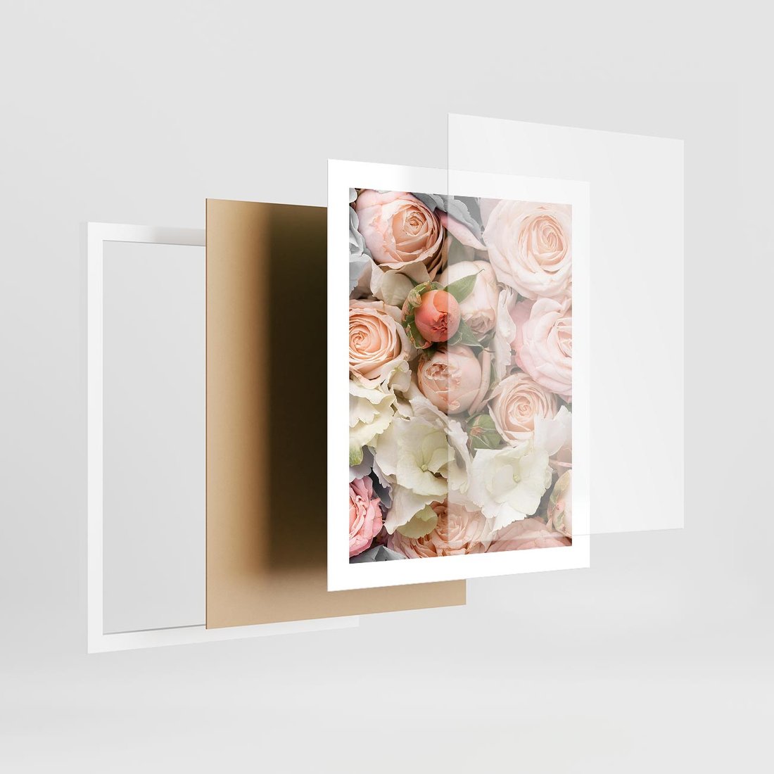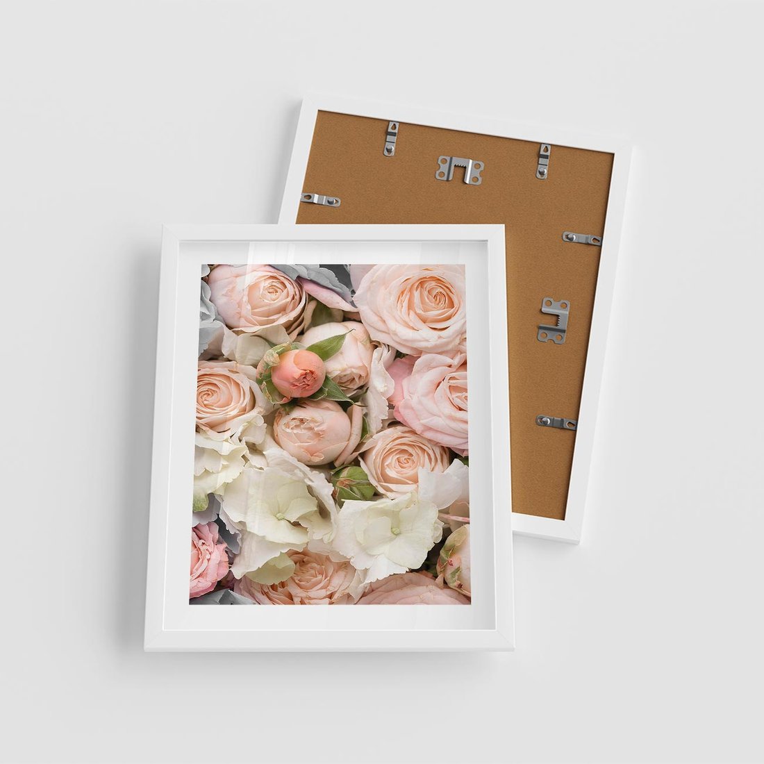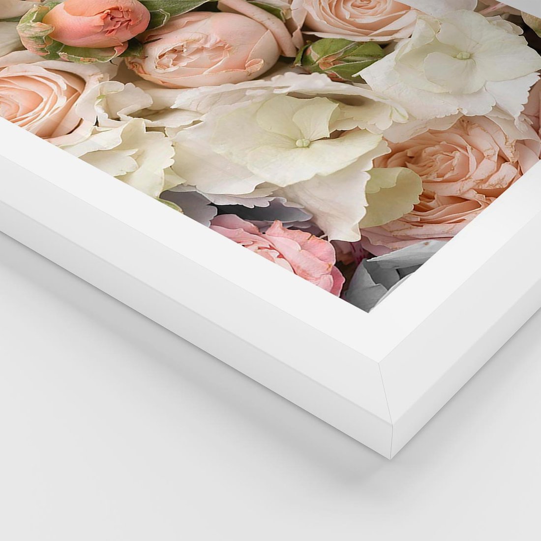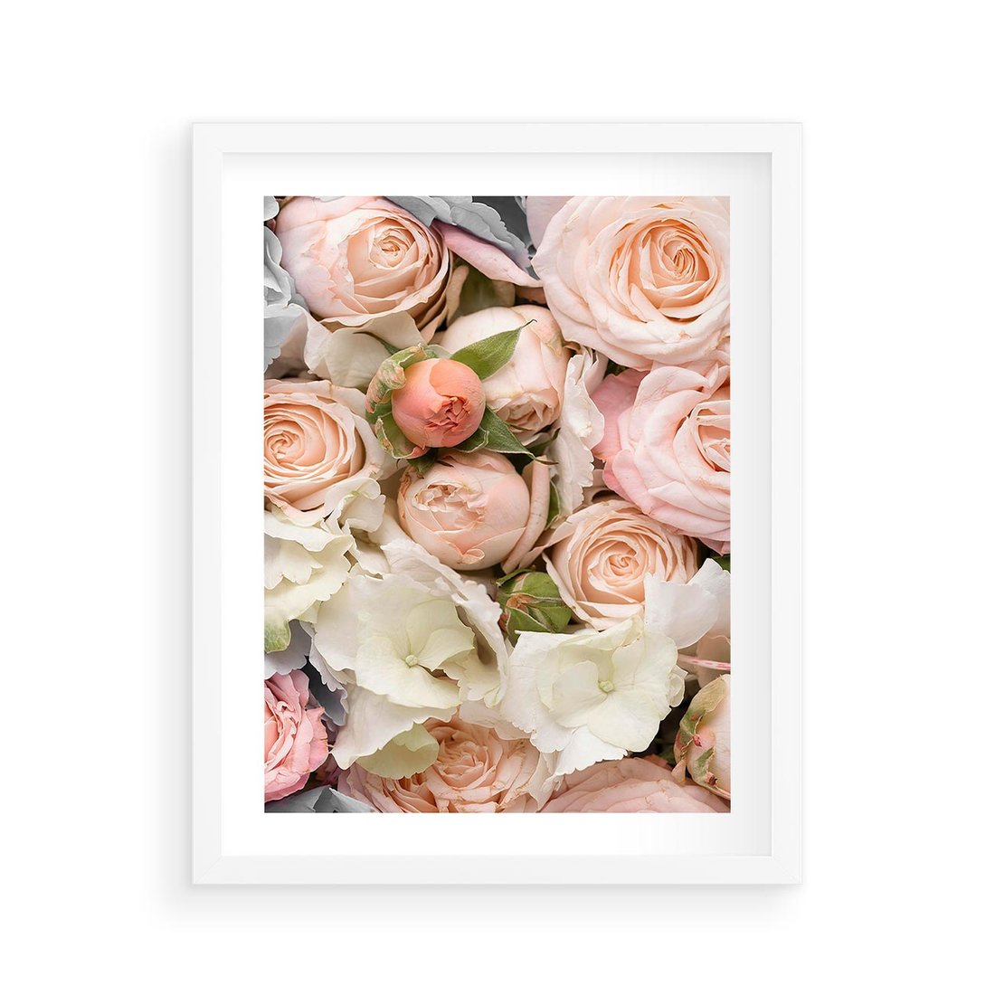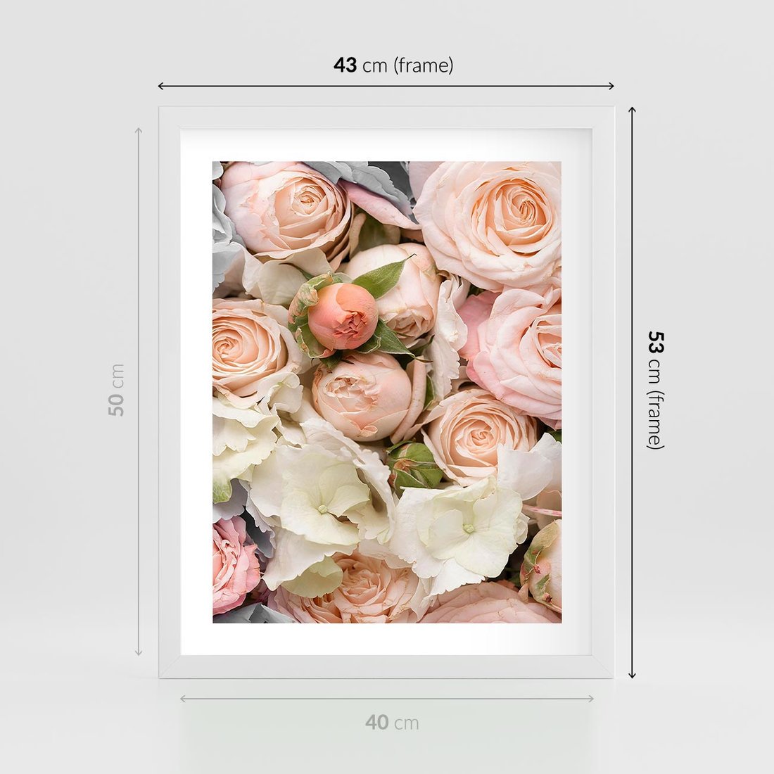 Plakat w ramie 40x50 - Kwiatowy Rarytas: Róże w Herbacianym Zbliżeniu - kwiaty, herbaciane - rama biała