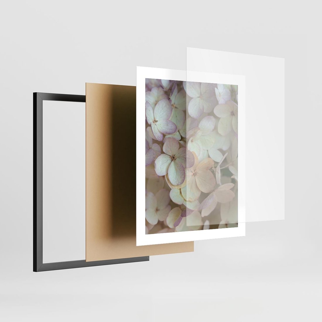 Plakat w ramie 40x50 - Kwiatowy taniec - kwiaty, hortensje - rama czarna