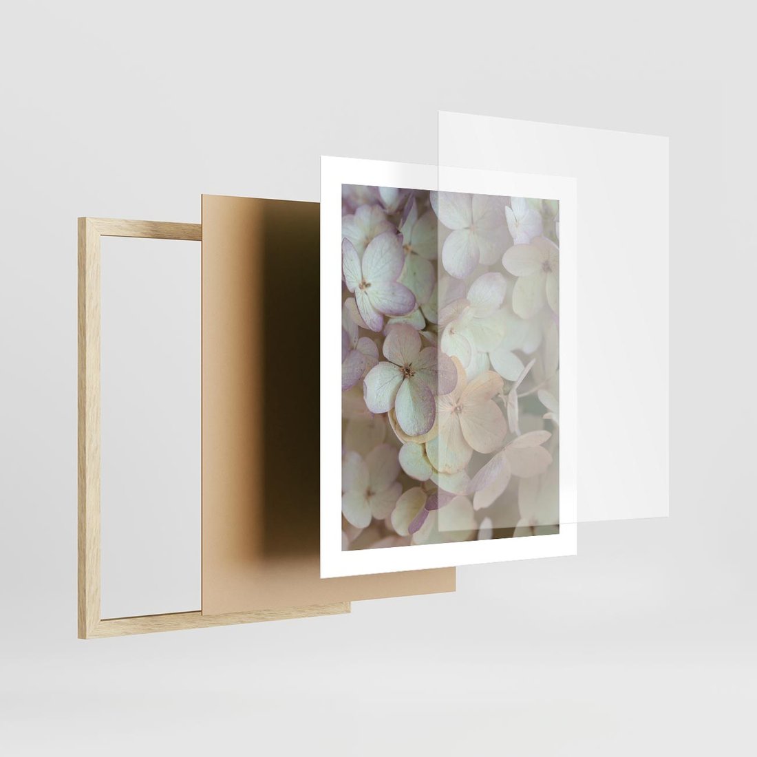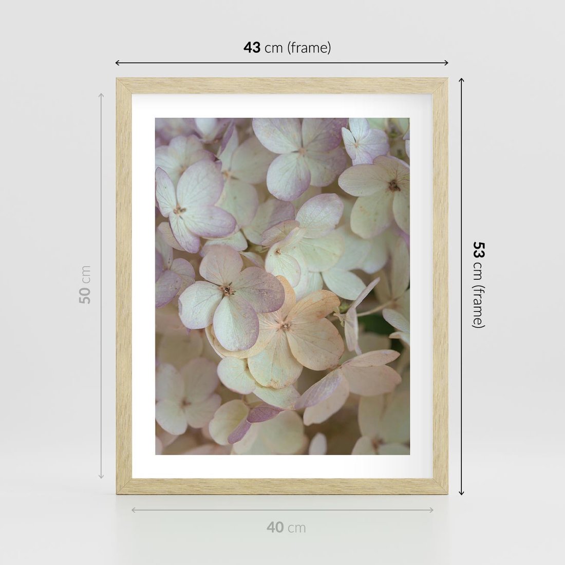 Plakat w ramie 40x50 - Kwiatowy taniec - kwiaty, hortensje - rama drewno