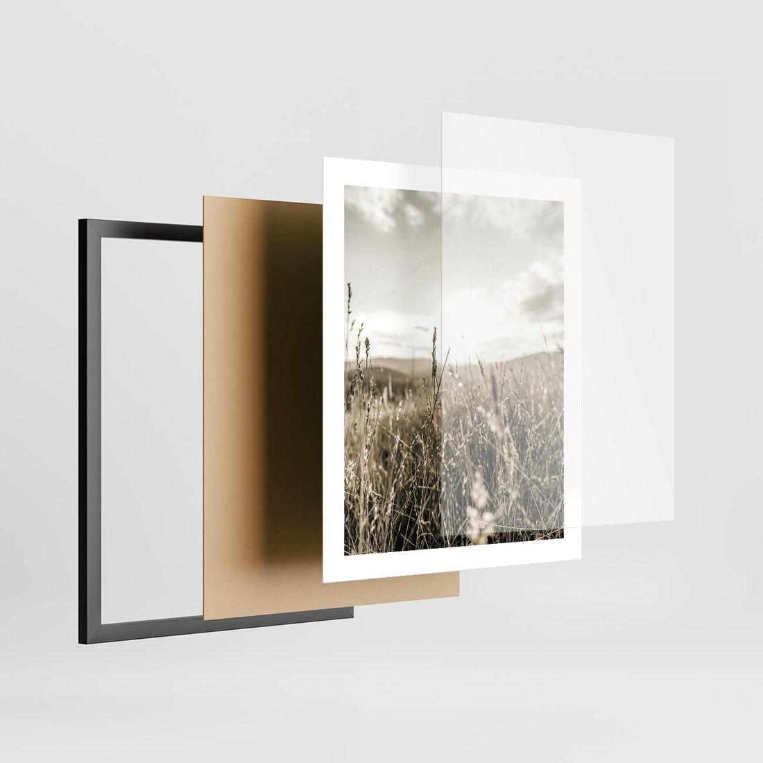 Plakat w ramie 40x50 - Łąka w Klimacie Sepii - suche trawy, łąka - rama czarna