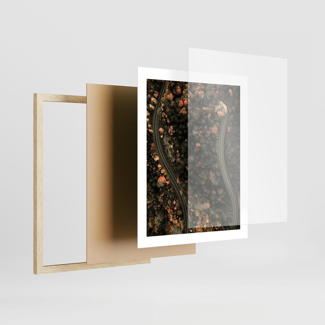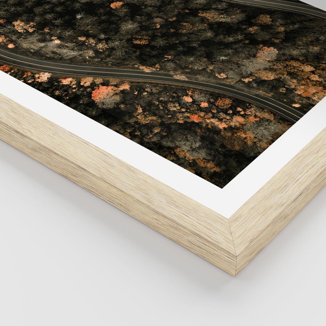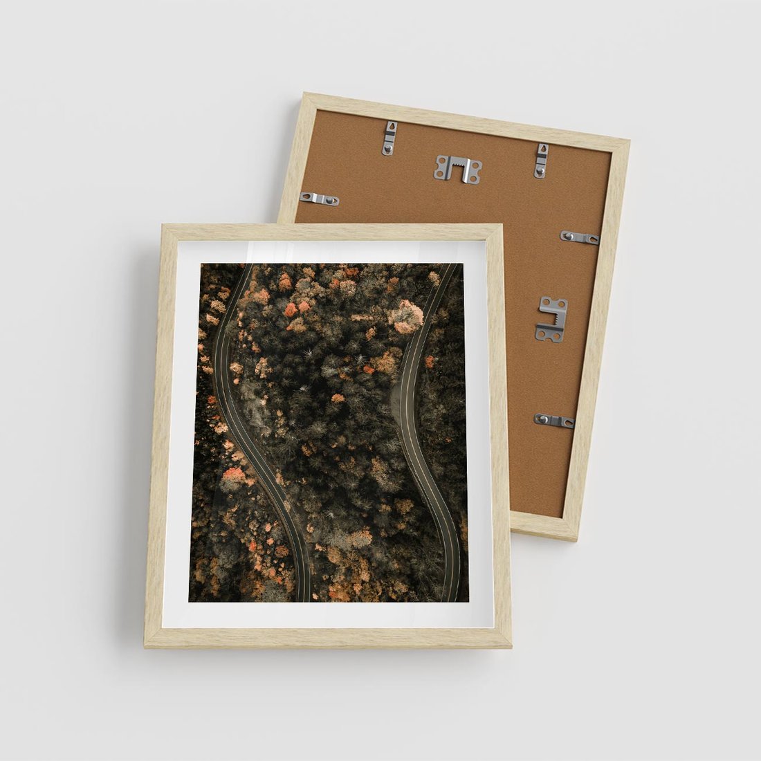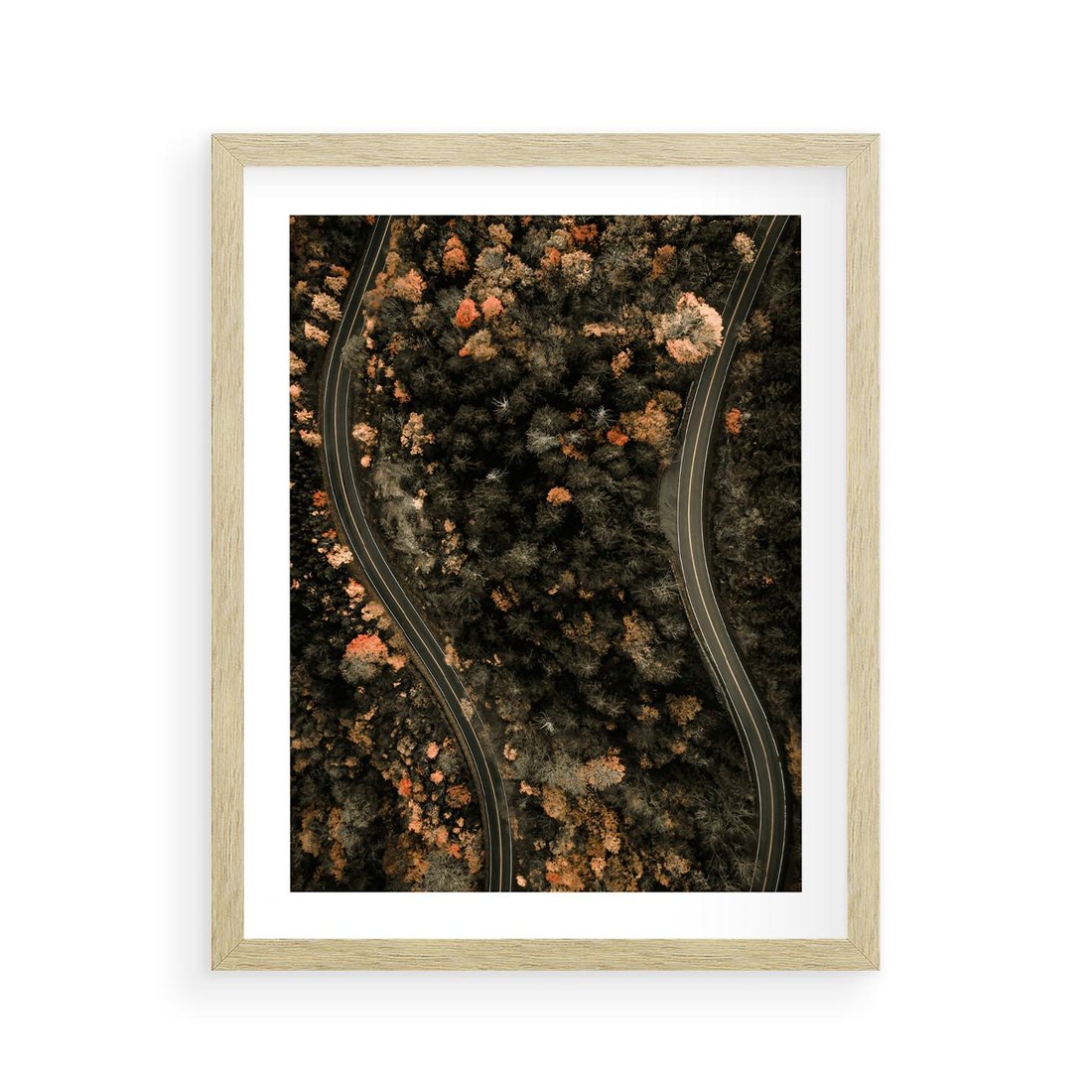 Plakat w ramie 40x50 - Las i Droga w Kolorach Jesieni - droga, ujęcie z góry - rama drewno