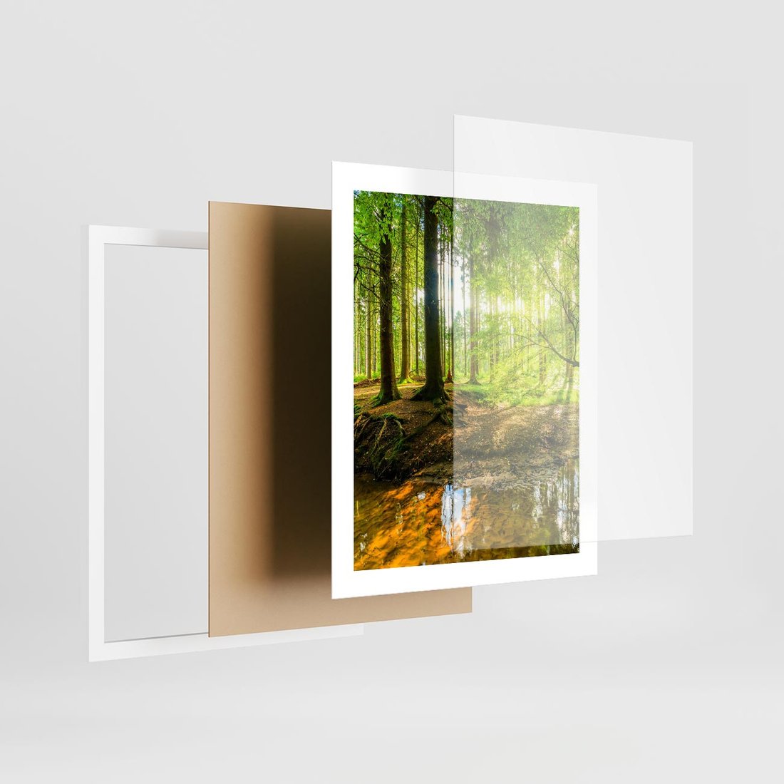 Plakat w ramie 40x50 - Las nad Wodą - las, woda - rama biała