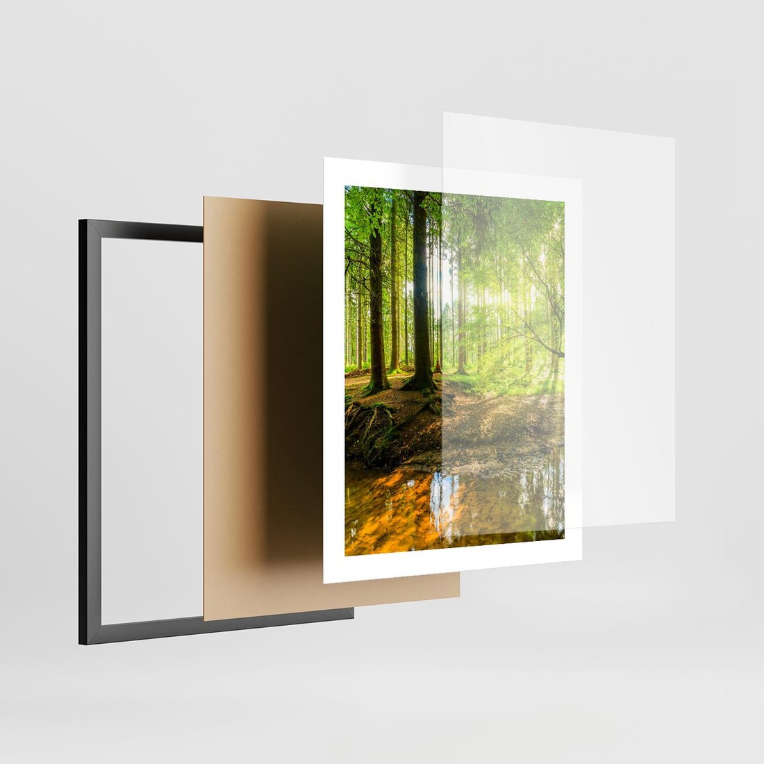Plakat w ramie 40x50 - Las nad Wodą - las, woda - rama czarna