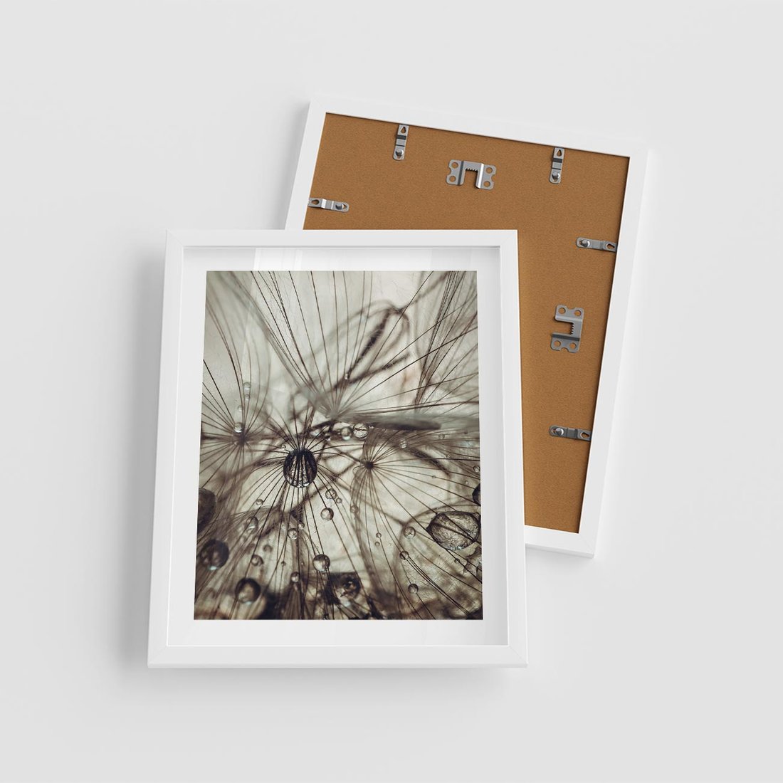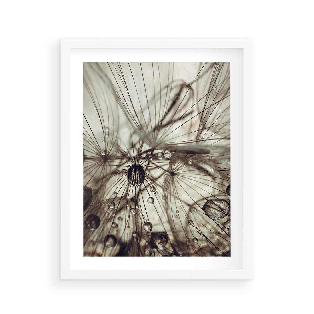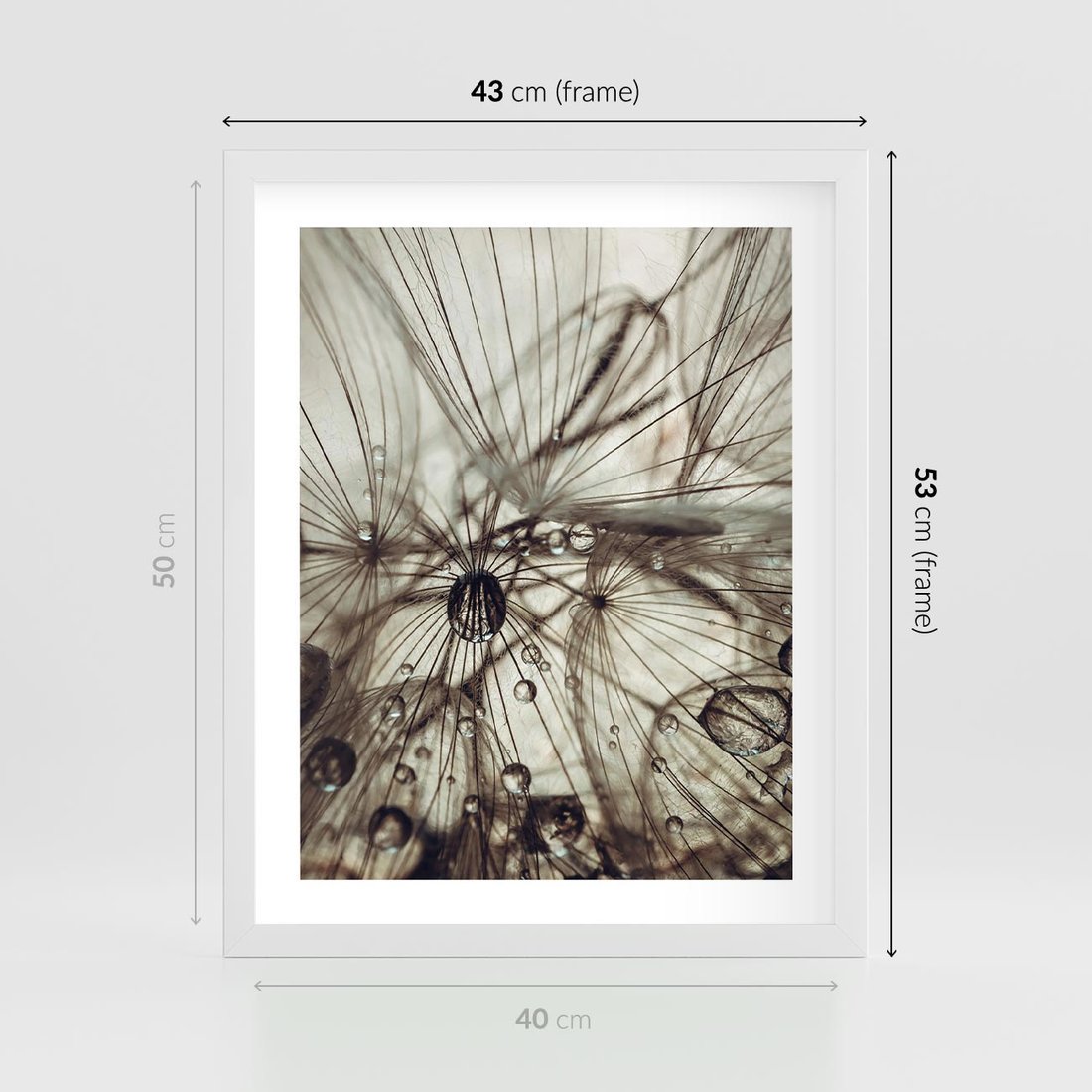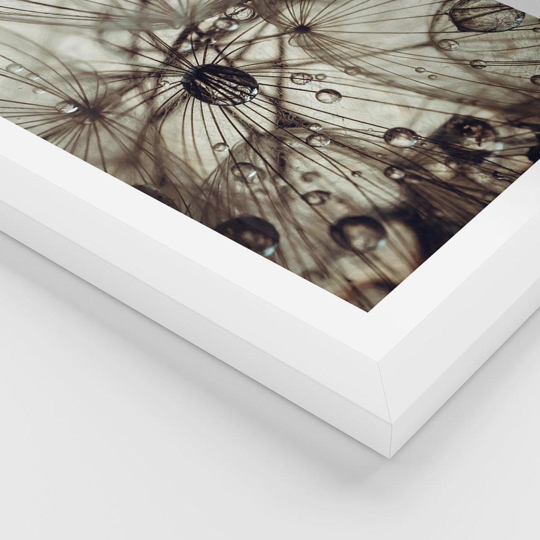 Plakat w ramie 40x50 - Lekkie dmuchawce - dmuchawce, krople - rama biała