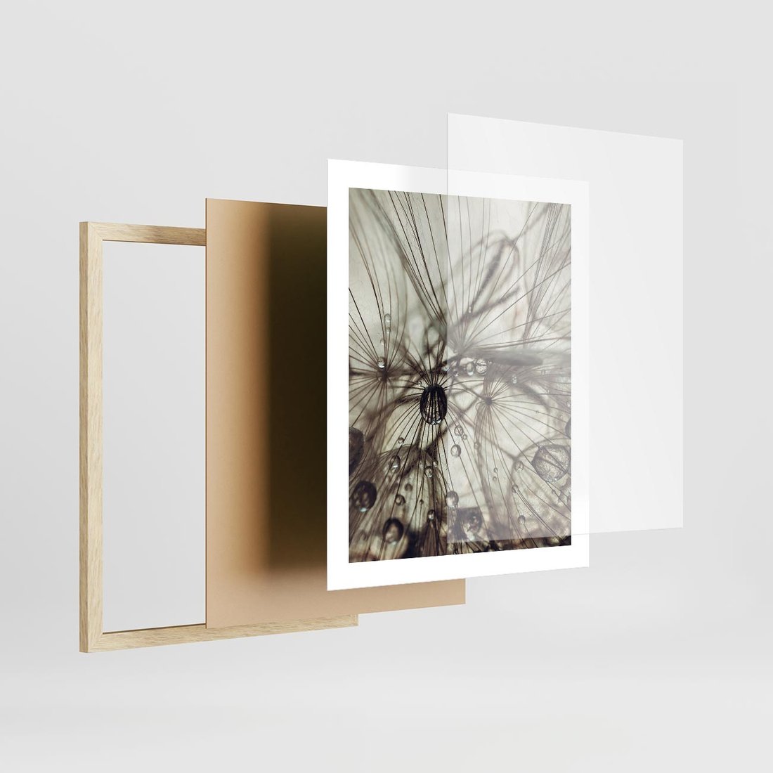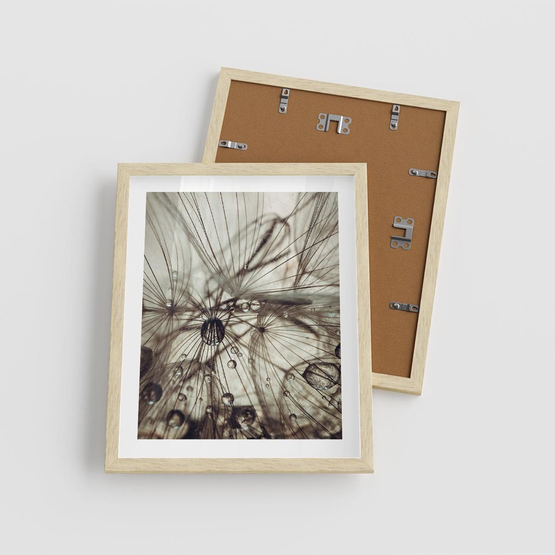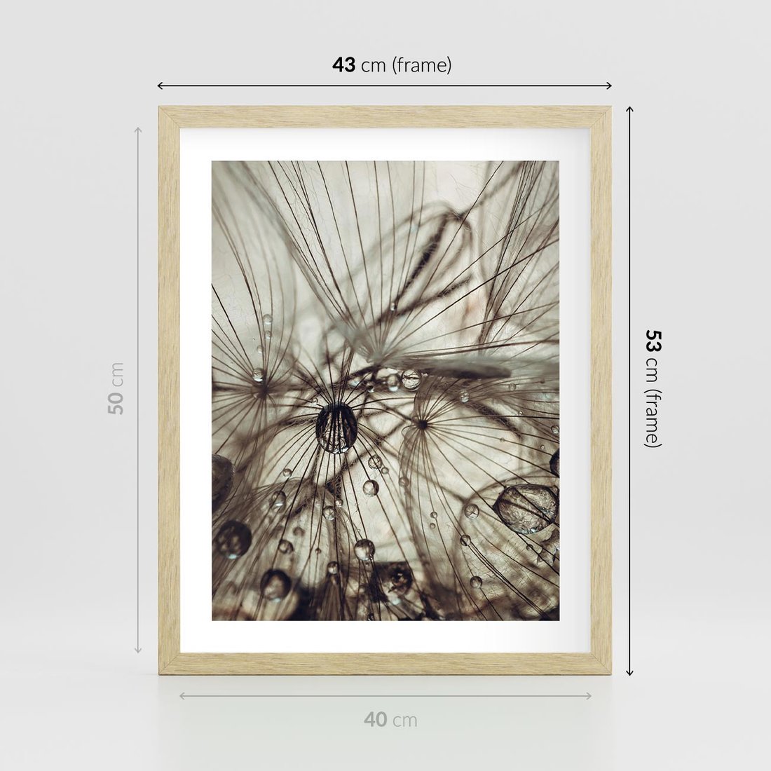Plakat w ramie 40x50 - Lekkie dmuchawce - dmuchawce, krople - rama drewno