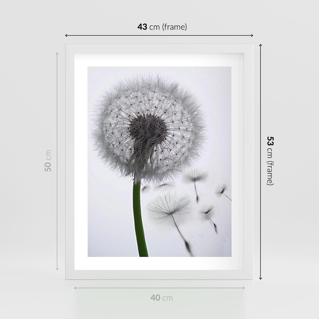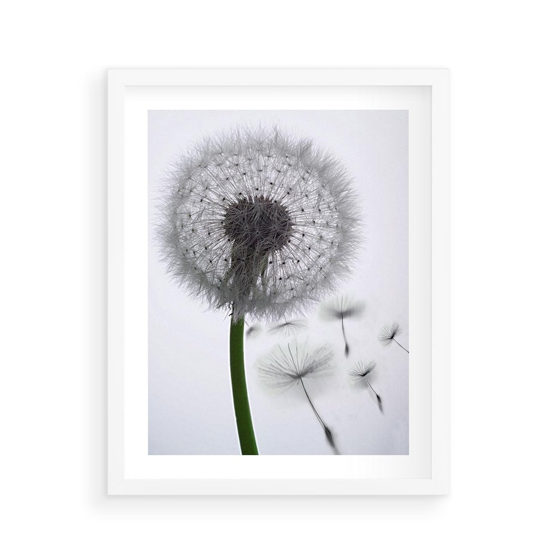 Plakat w ramie 40x50 - Lekkość Przemijania - dmuchawiec, makro - rama biała