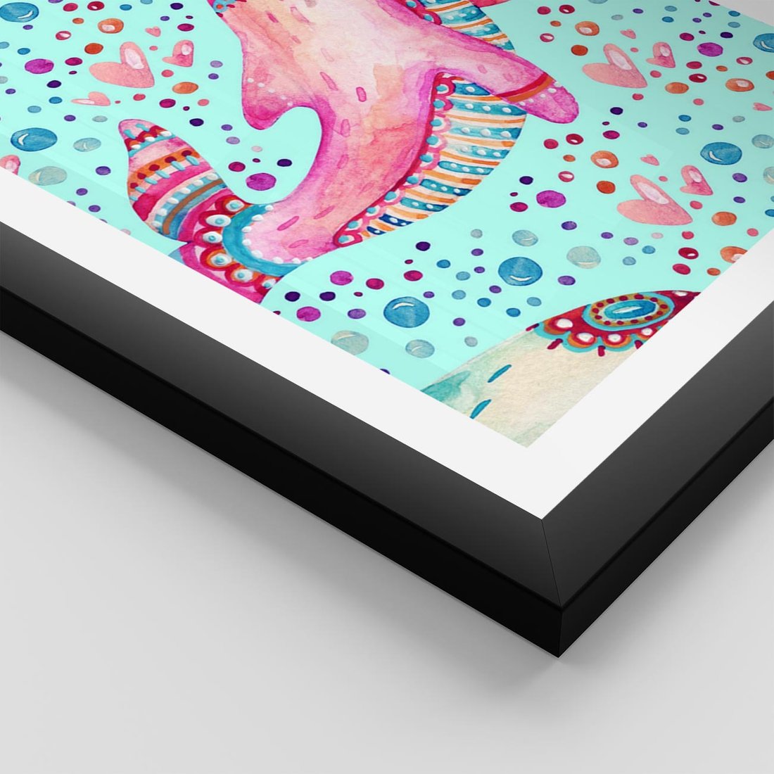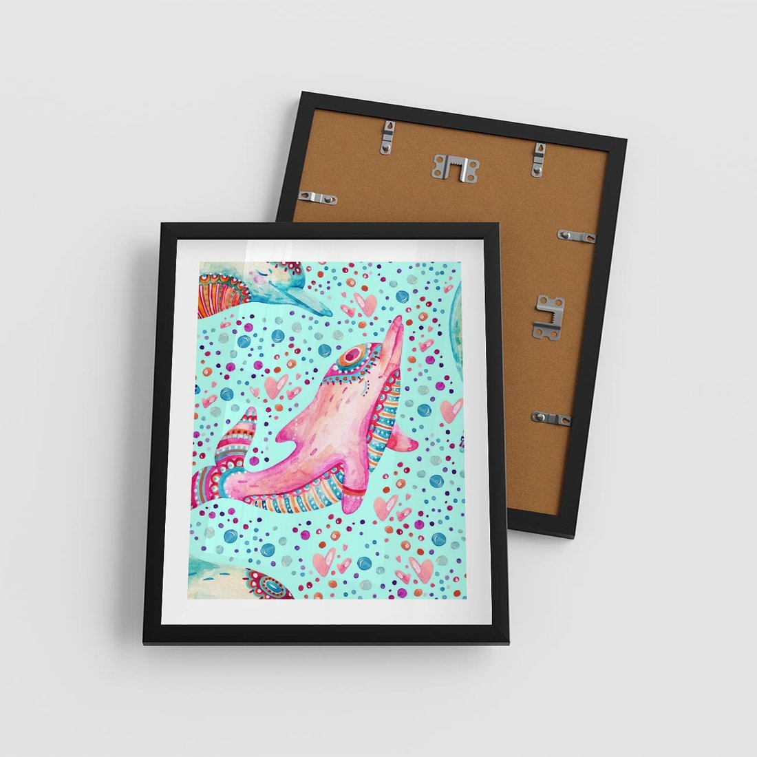 Plakat w ramie 40x50 - Lekkość W Ruchu - delfin, akwarela - rama czarna