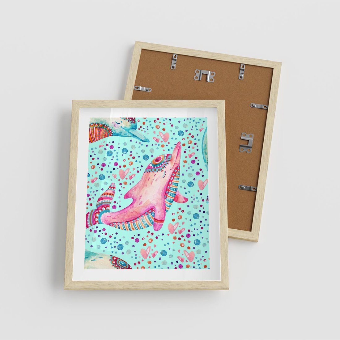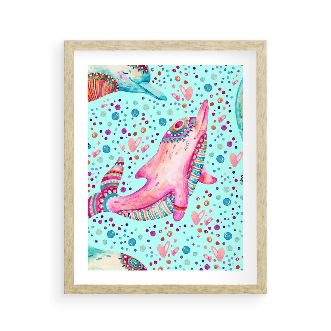Plakat w ramie 40x50 - Lekkość W Ruchu - delfin, akwarela - rama drewno