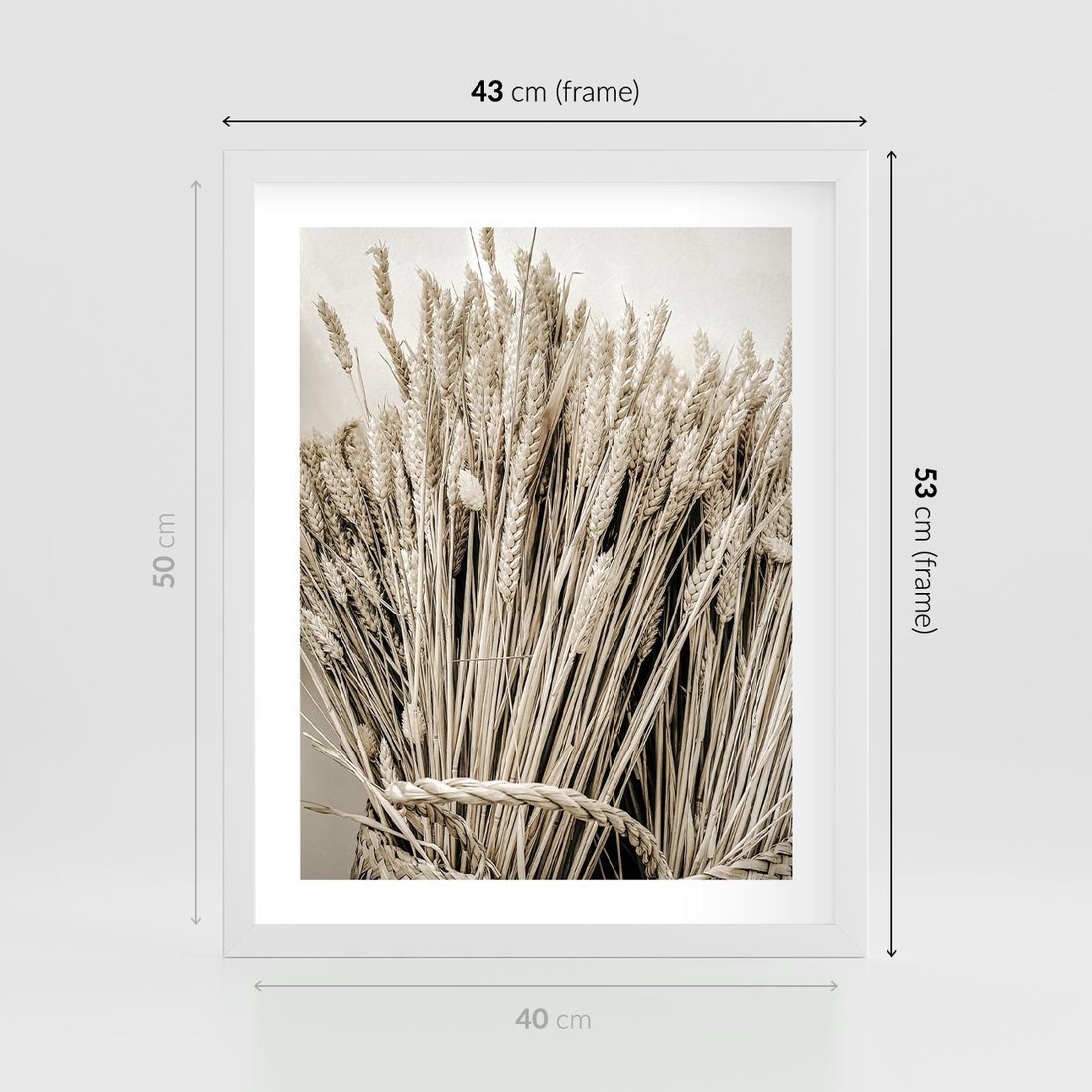 Plakat w ramie 40x50 - Letni Plon - zboże, kłosy zboża - rama biała