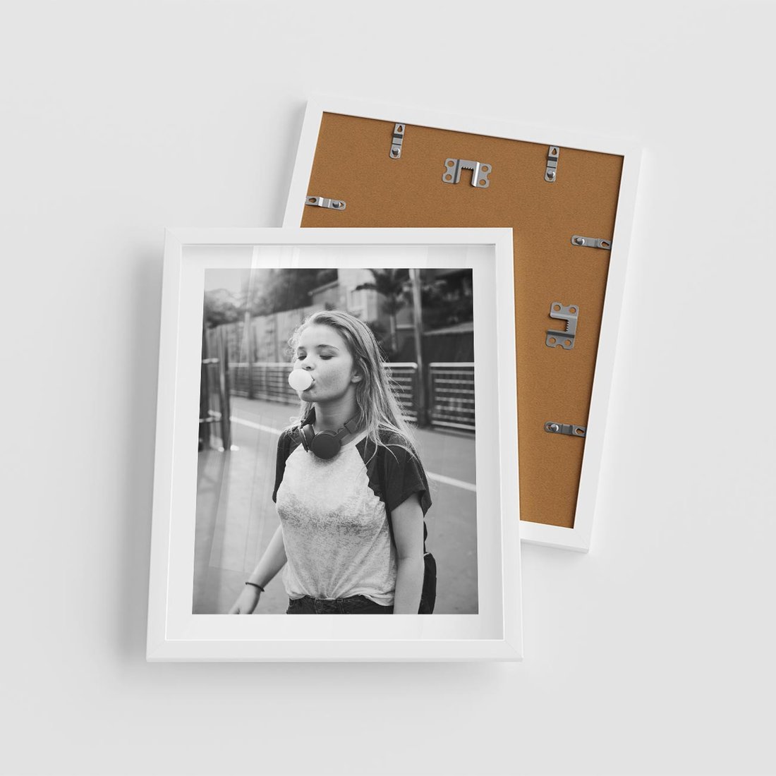 Plakat w ramie 40x50 - Letnia Młodość - nowoczesna fotografia, czarno biała - rama biała