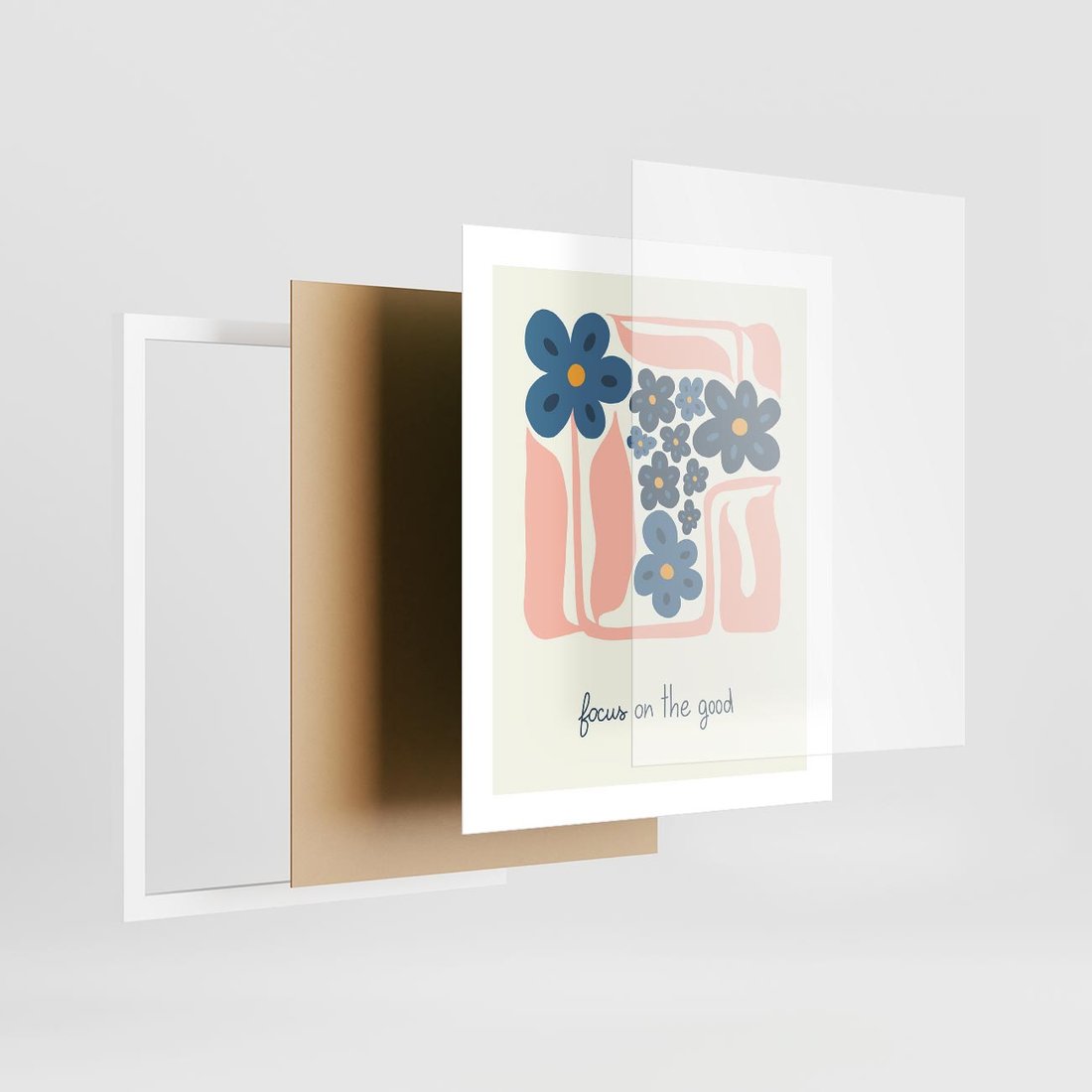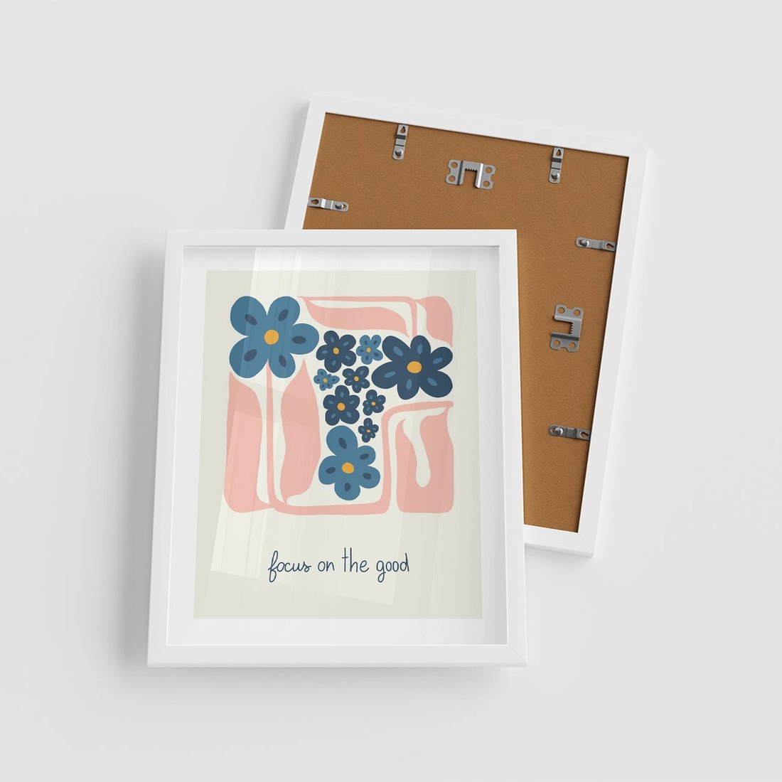 Ta minimalistyczna kwiatowa kompozycja w pastelowych kolorach tworzy spokojną i pozytywną afirmację. To harmonijne połączenie prostoty formy roślinnej z inspirującą typografią. Ten obraz wprowadzi subtelny akcent natury i pozytywnego myślenia do wnętrza, zachowując jednocześnie estetykę minimalistycznego piękna.