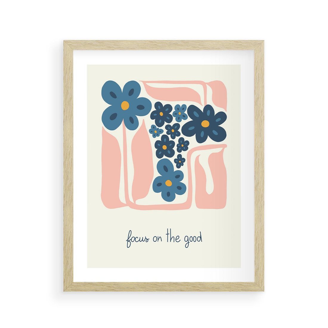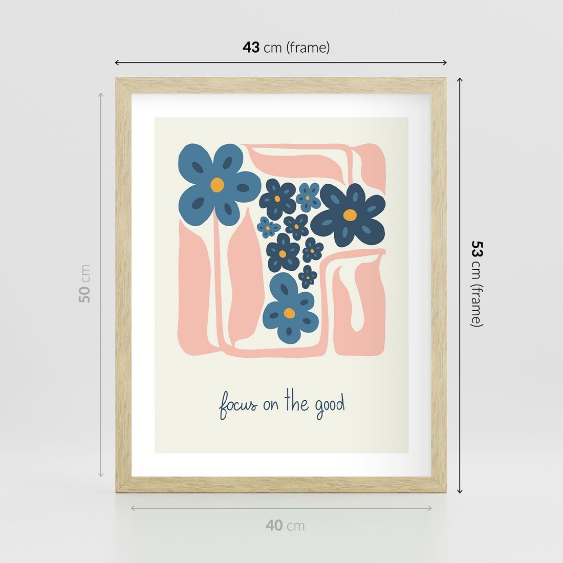 Ta minimalistyczna kwiatowa kompozycja w pastelowych kolorach tworzy spokojną i pozytywną afirmację. To harmonijne połączenie prostoty formy roślinnej z inspirującą typografią. Ten obraz wprowadzi subtelny akcent natury i pozytywnego myślenia do wnętrza, zachowując jednocześnie estetykę minimalistycznego piękna.