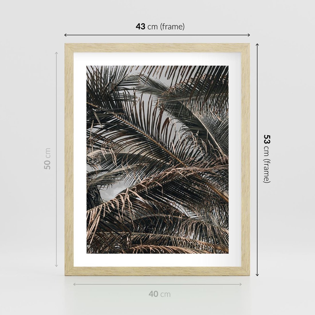 Plakat w ramie 40x50 - Liściaste Palmy - palmy, drzewa palmowe - rama drewno