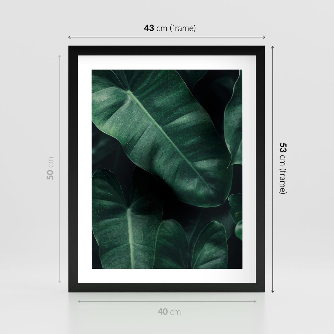 Plakat w ramie 40x50 - Liście Bananowca - minimalizm, zielone liście bananowca - rama czarna