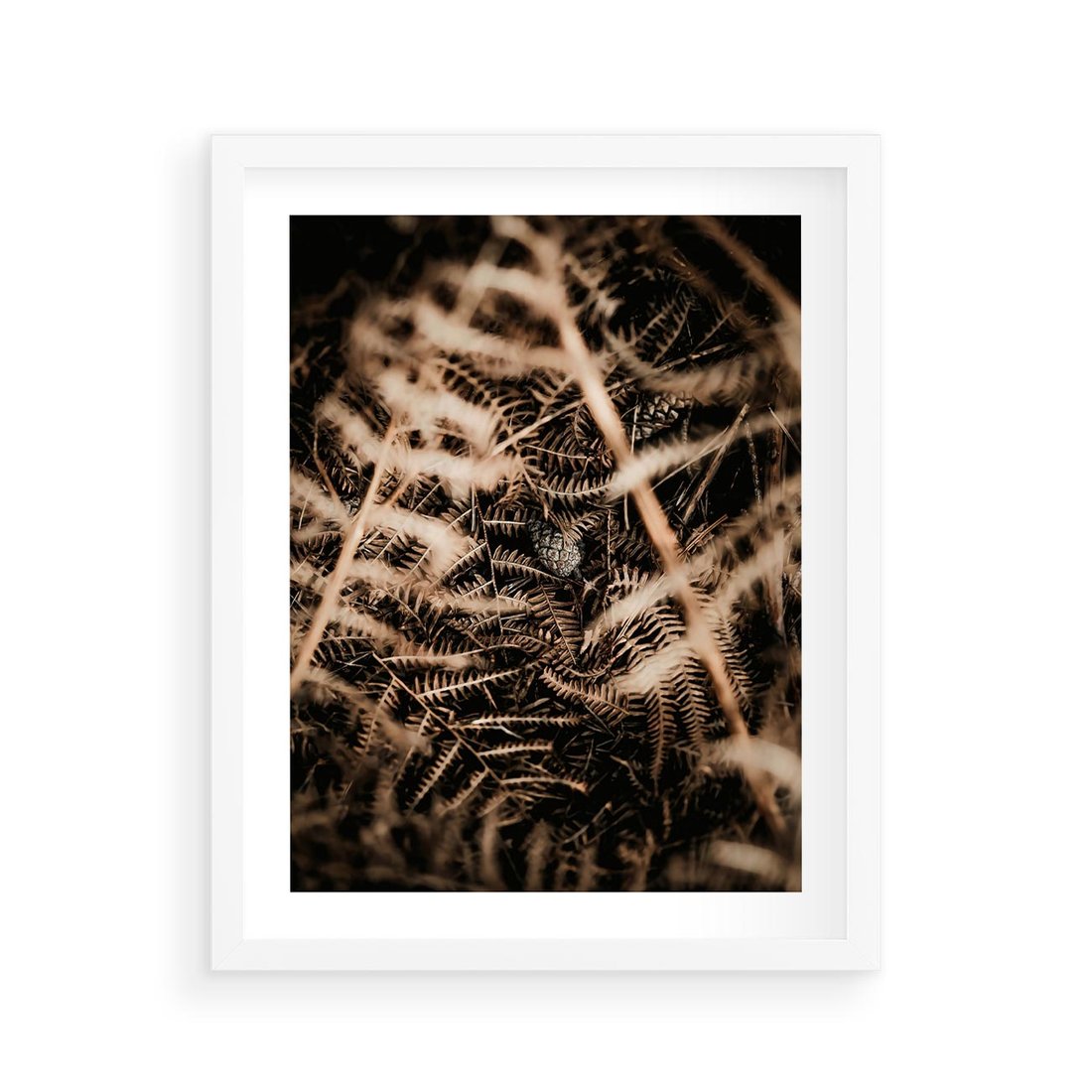 Plakat w ramie 40x50 - Liście i Paprocie - suche liście, paprocie - rama biała