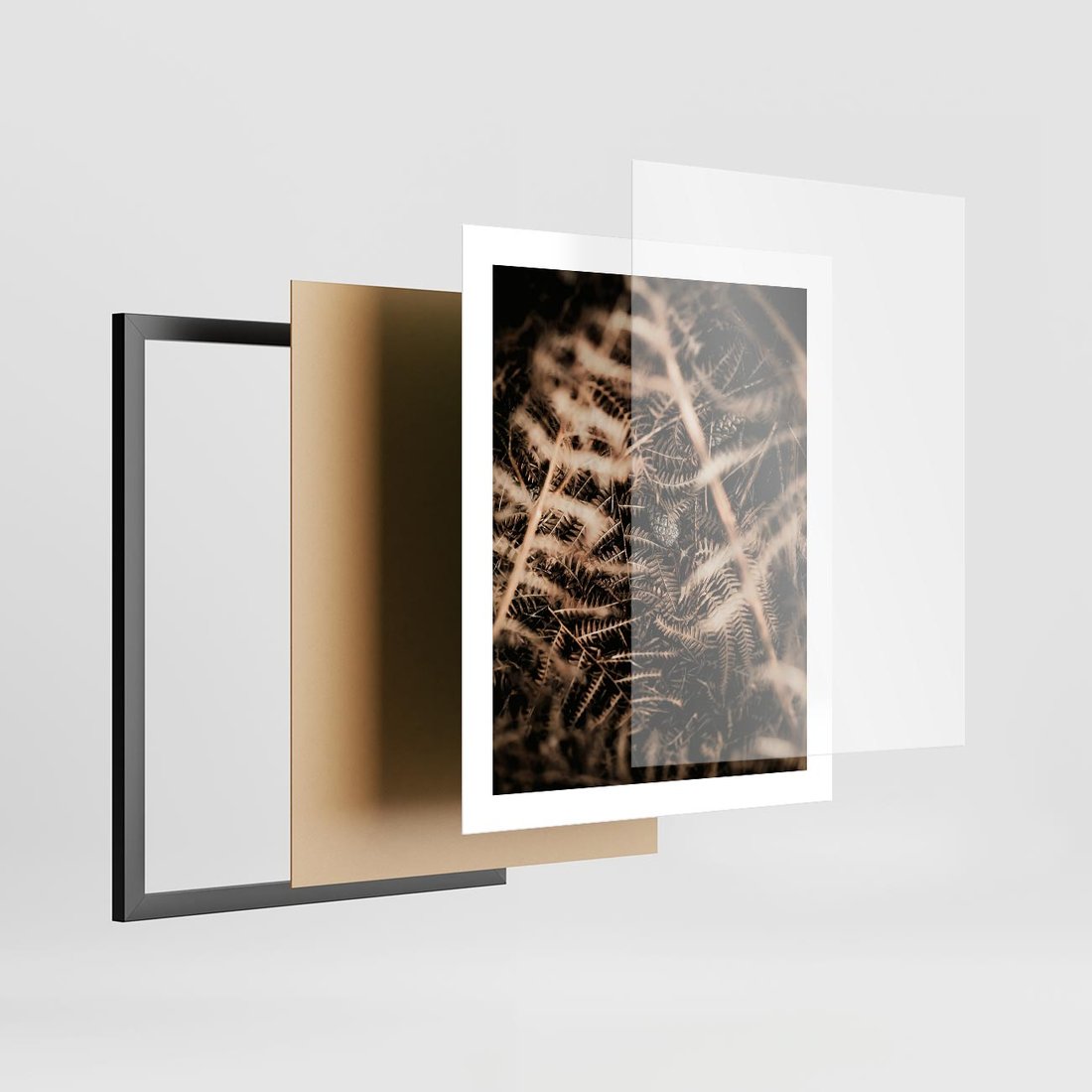 Plakat w ramie 40x50 - Liście i Paprocie - suche liście, paprocie - rama czarna