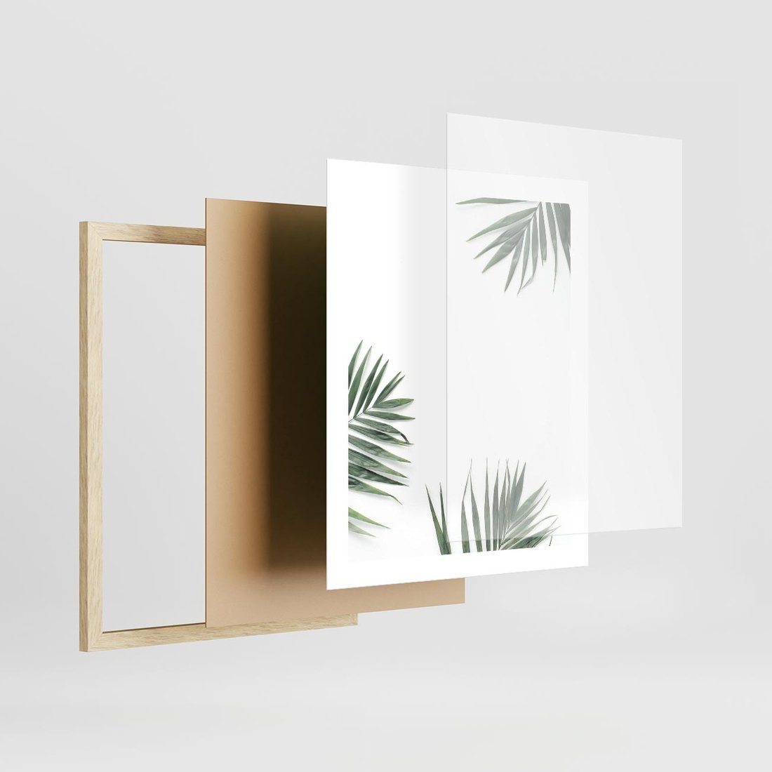 - Plakat w ramie 40x50 - Liście Palmy na Czystym Tle