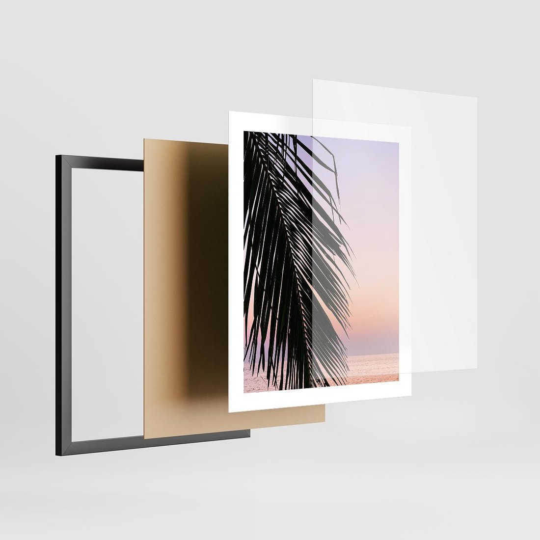 - Plakat w ramie 40x50 - Liście Palmy nad Morzem