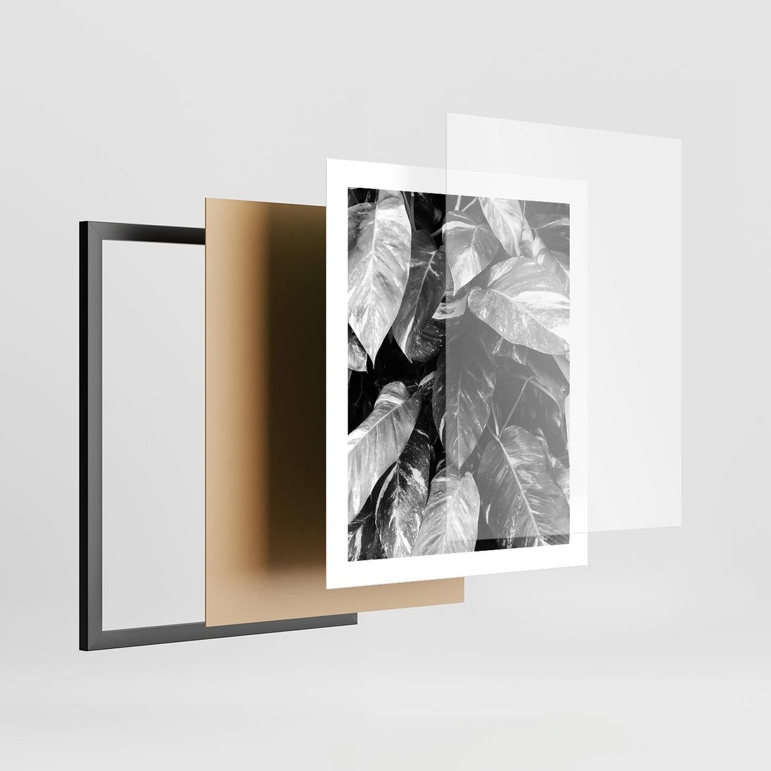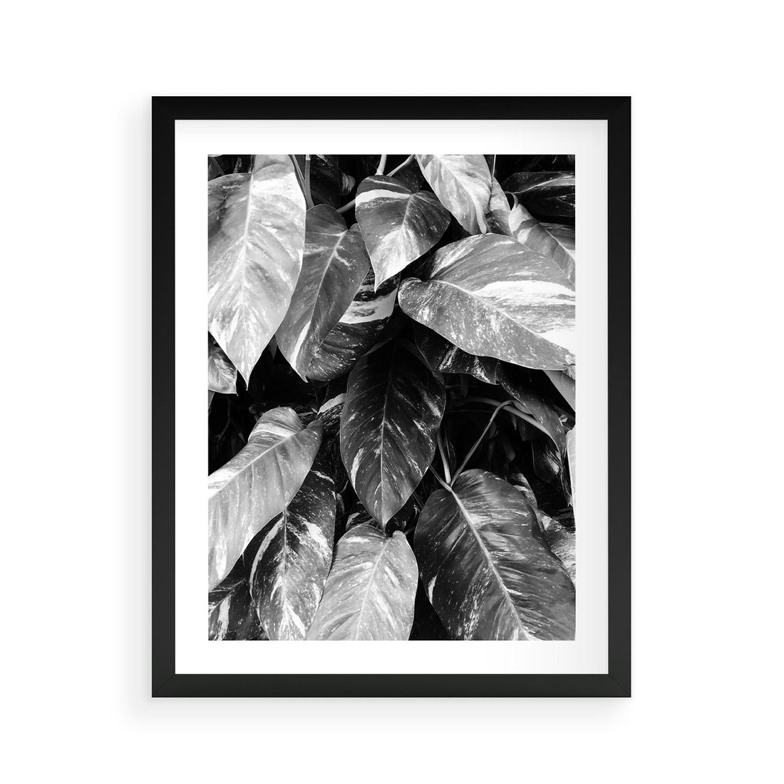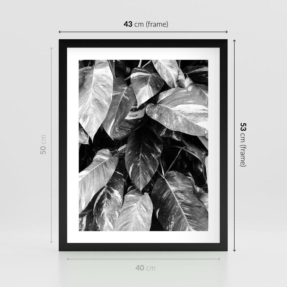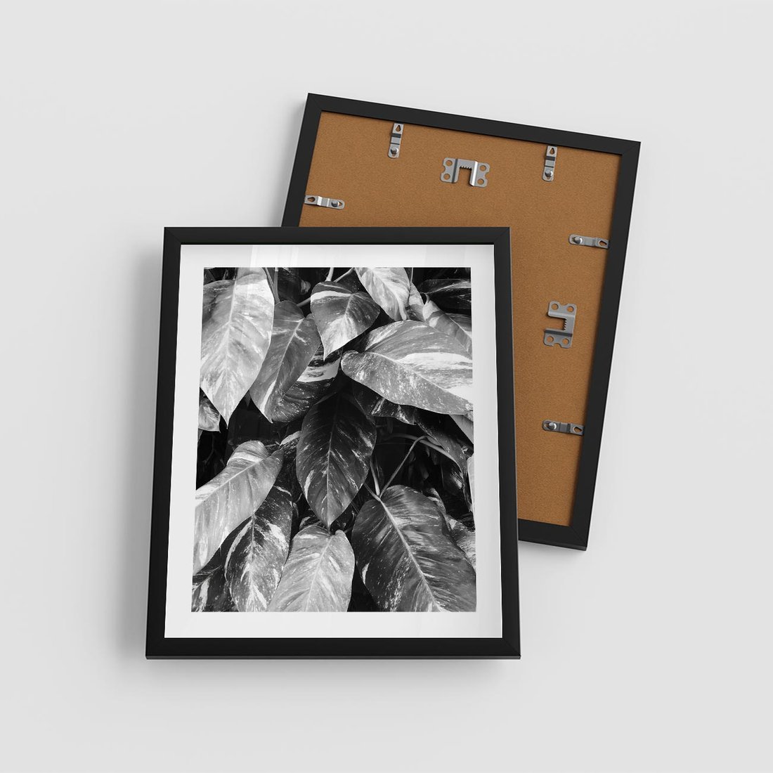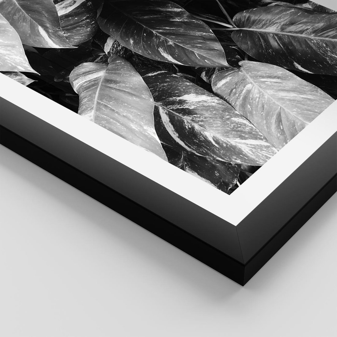 Plakat w ramie 40x50 - Liście w Czarno-Białej Fotografii - liście, roślina - rama czarna
