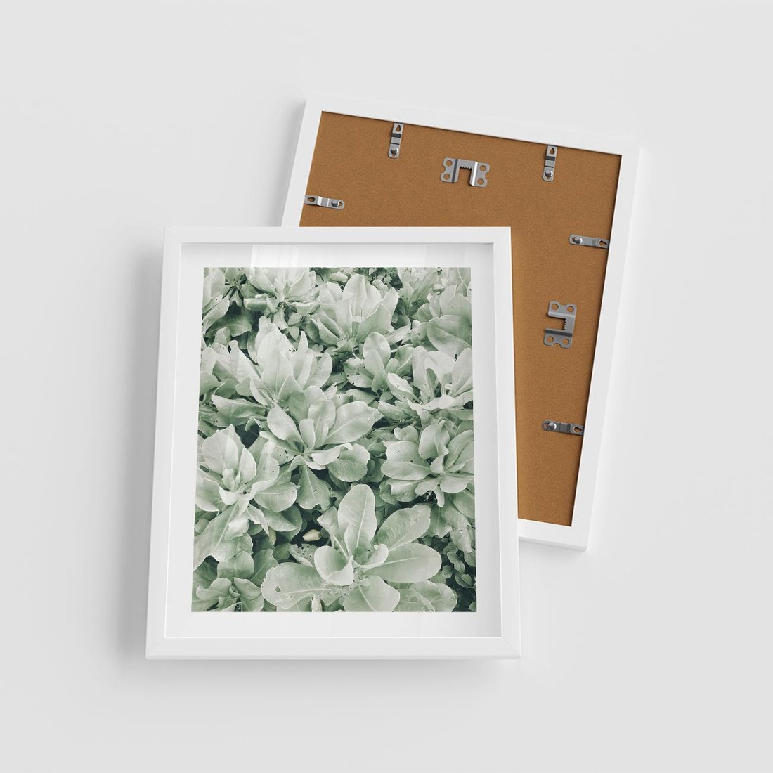 Plakat w ramie 40x50 - Liście w Jasnych Odcieniach Zielonego - liście, jasna zieleń fotografia - rama biała