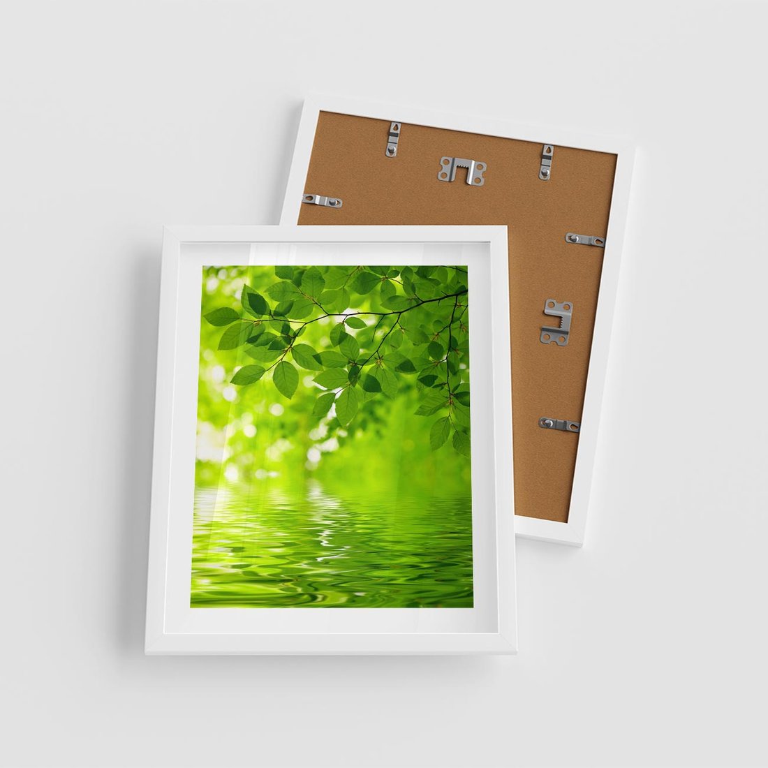 Plakat w ramie 40x50 - Liście w Wodzie - liście, woda - rama biała