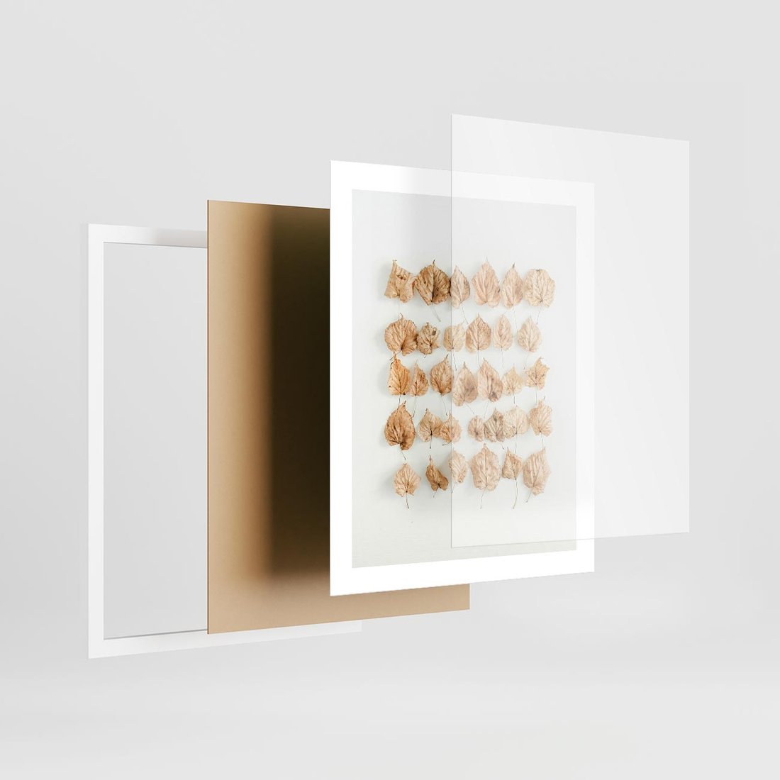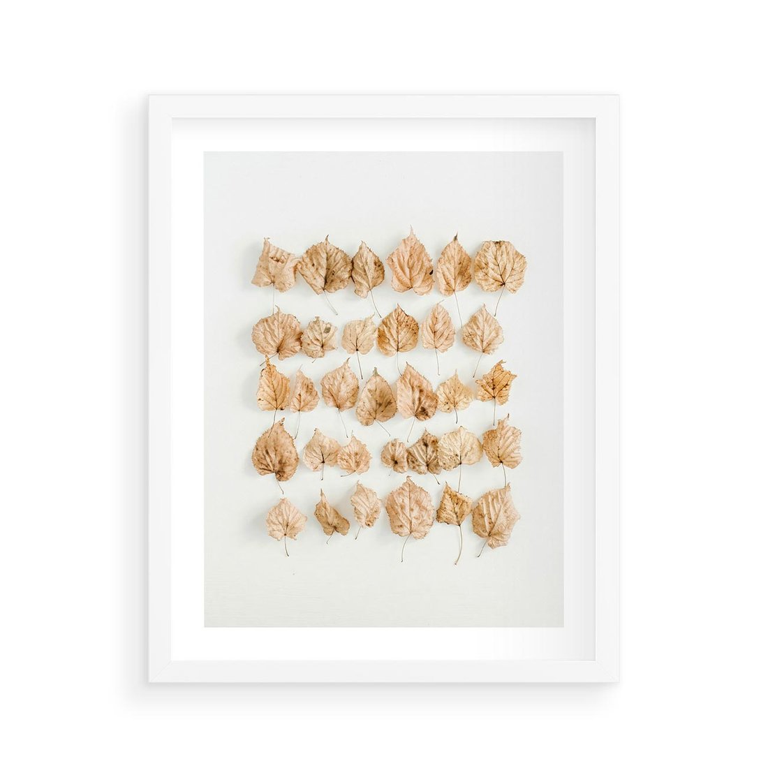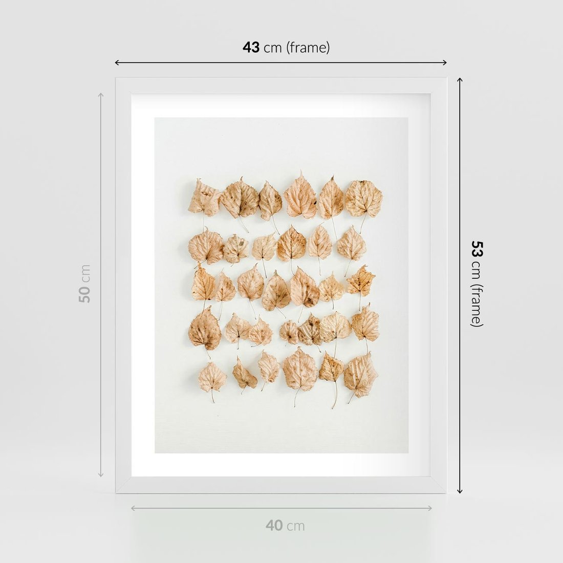 Plakat w ramie 40x50 - Liście Złotego Sezonu - kompozycja z suchych żółtych liści - rama biała