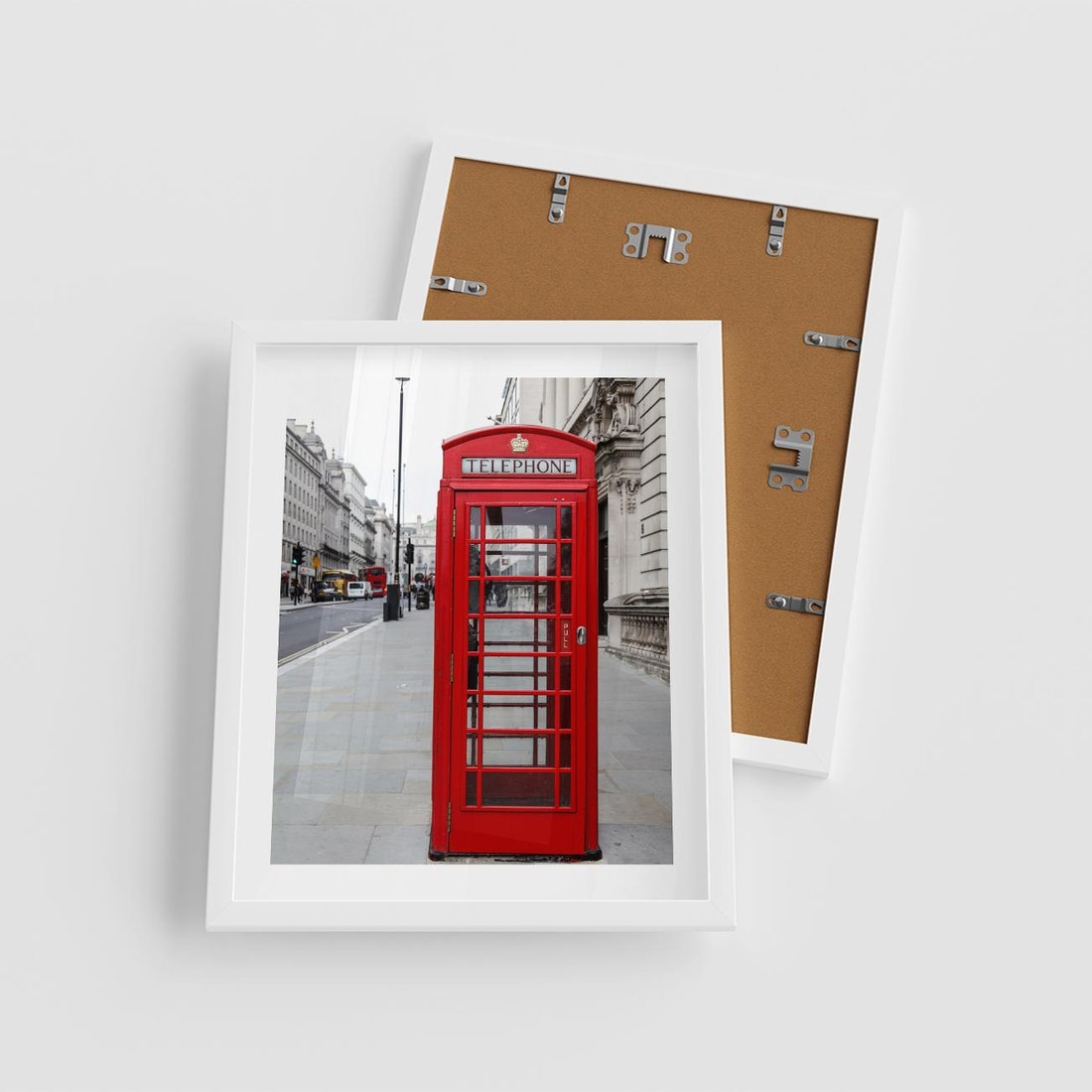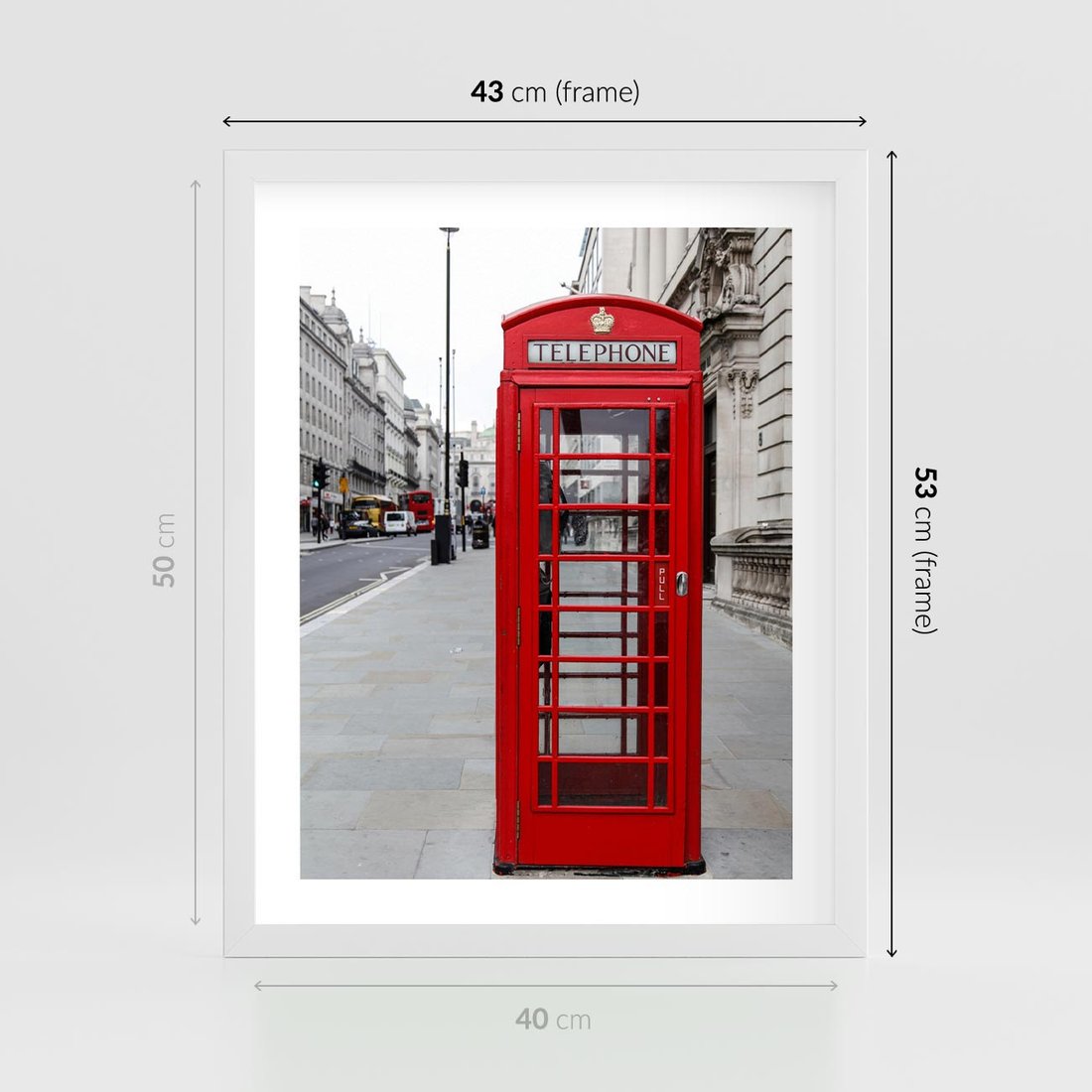 Plakat w ramie 40x50 - Londyńska budka w perspektywie - budka, Londyn - rama biała
