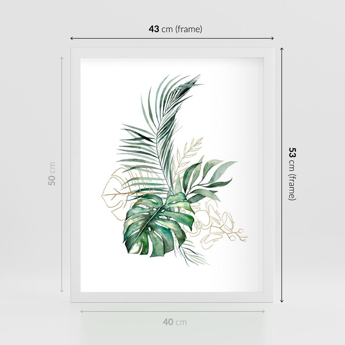 Plakat w ramie 40x50 - Luksus w Detalu - złote, liście - rama biała