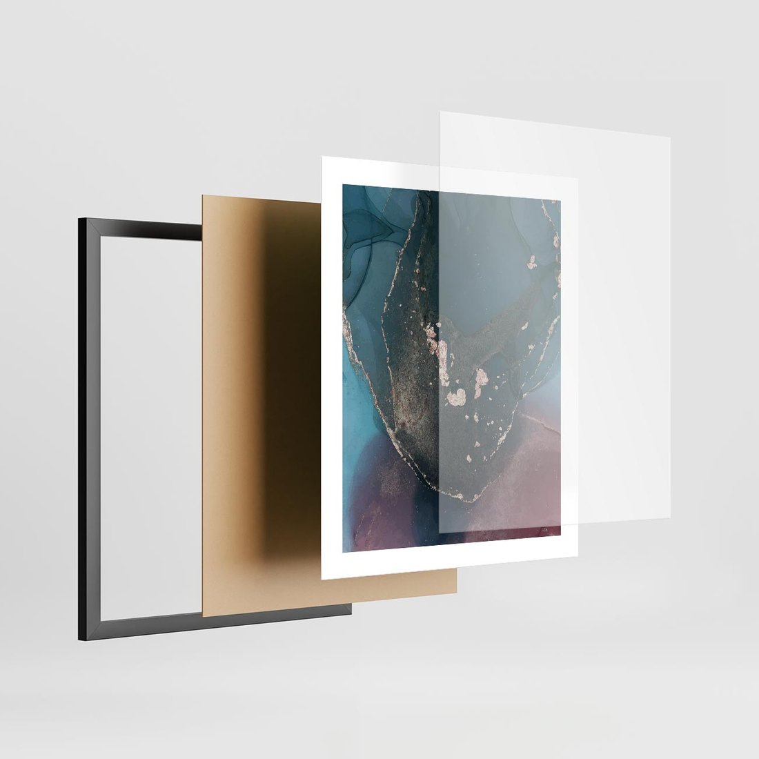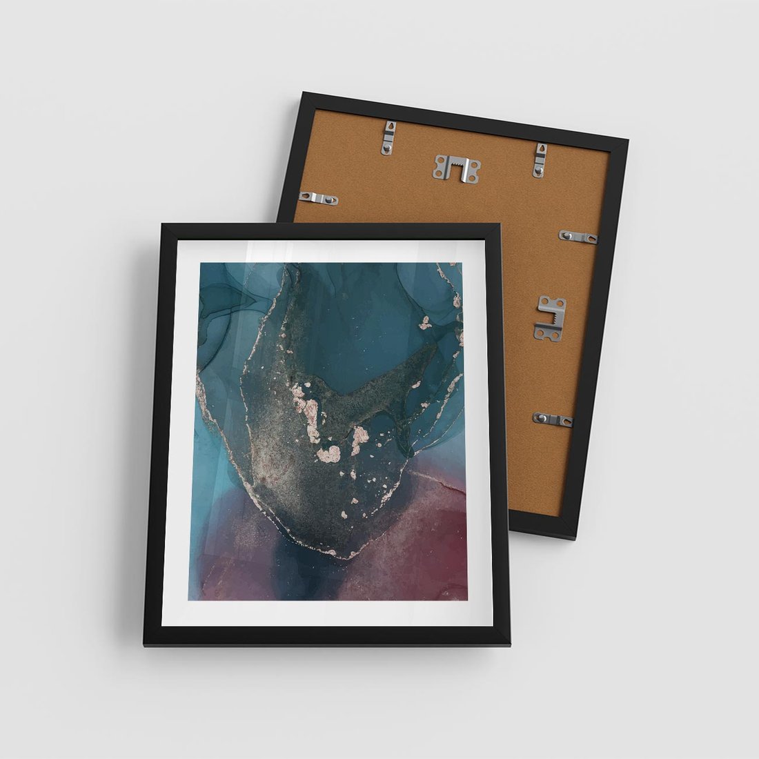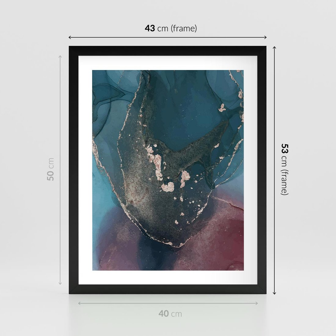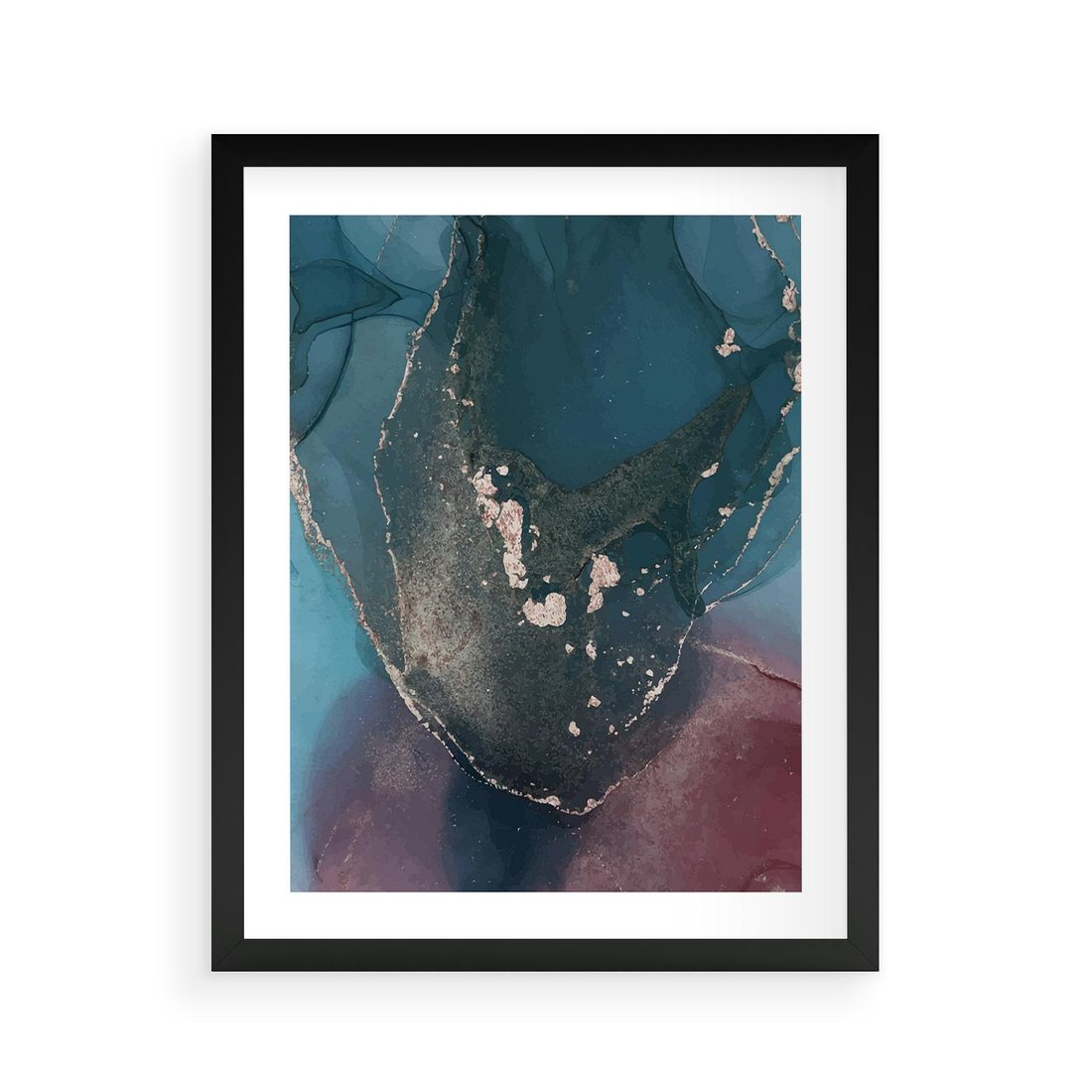 Plakat w ramie 40x50 - Luksusowy Kontrast - marmur, granat i fiolet - rama czarna
