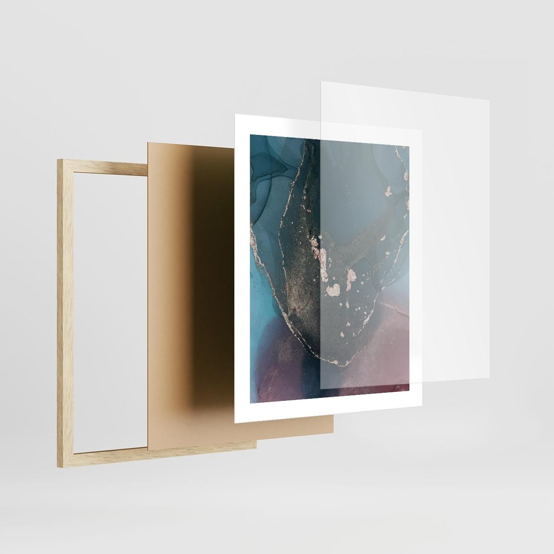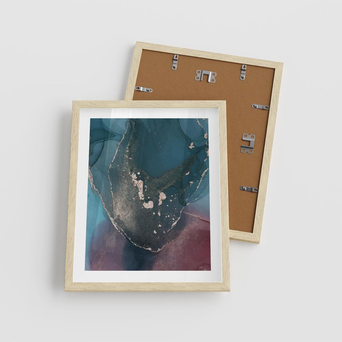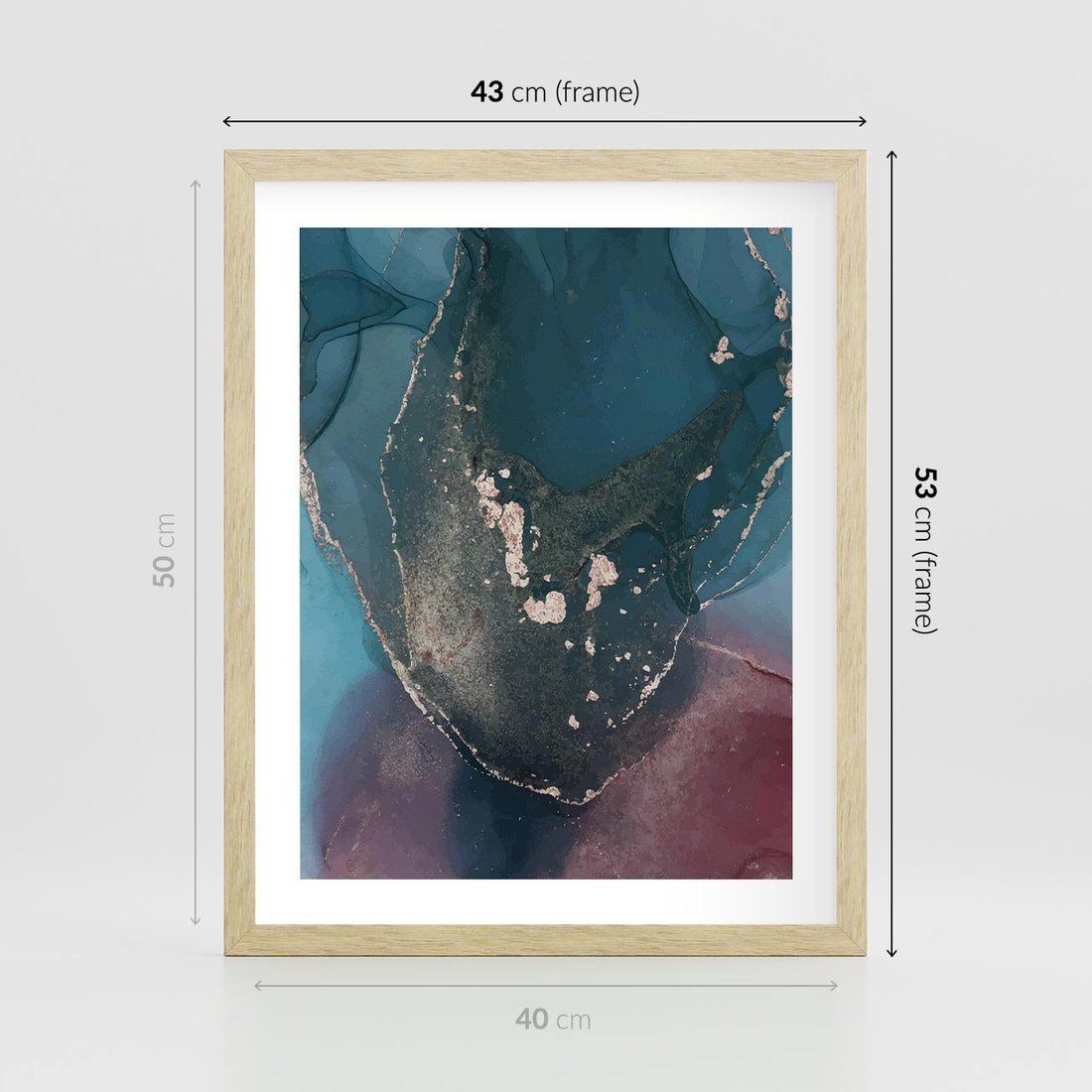 Plakat w ramie 40x50 - Luksusowy Kontrast - marmur, granat i fiolet - rama drewno