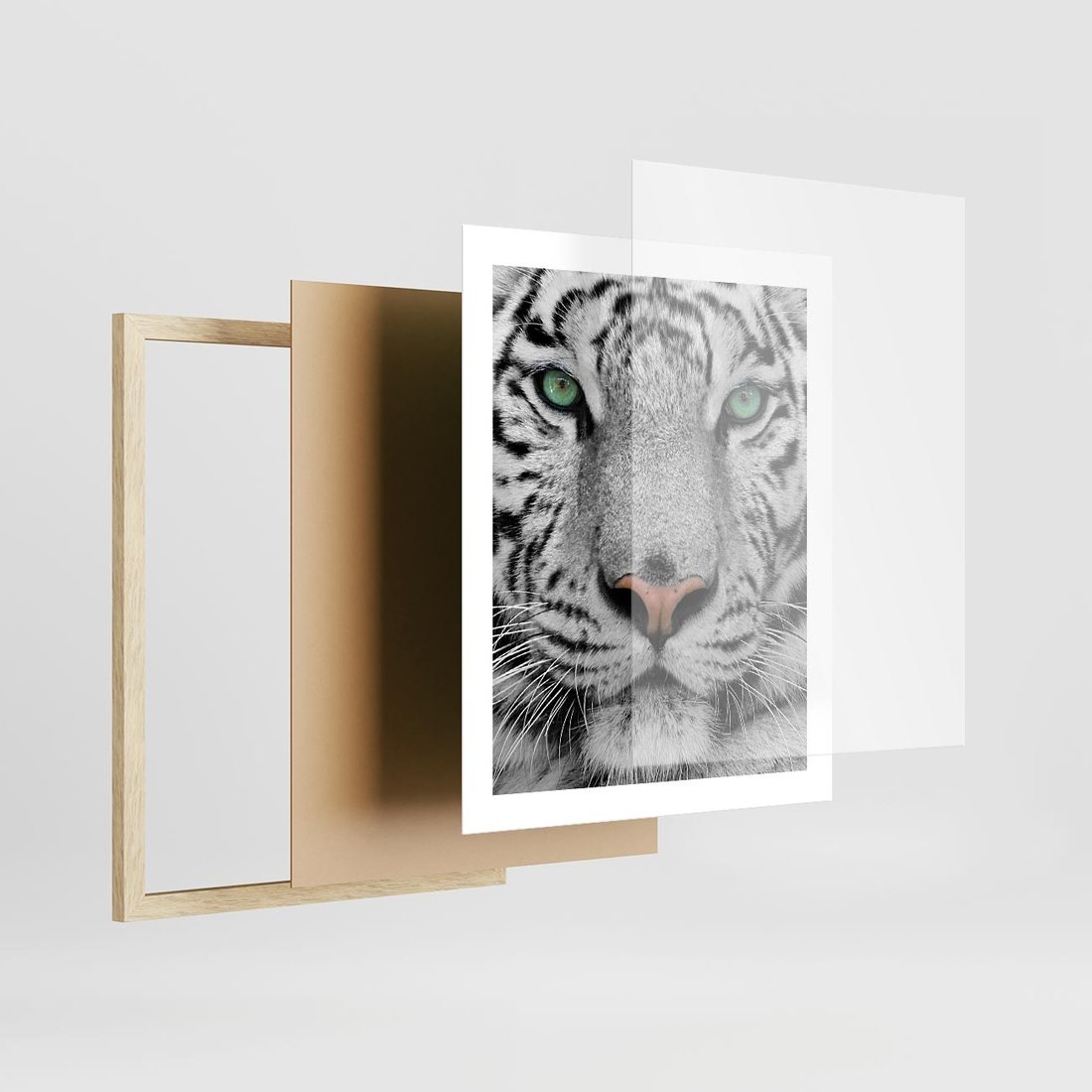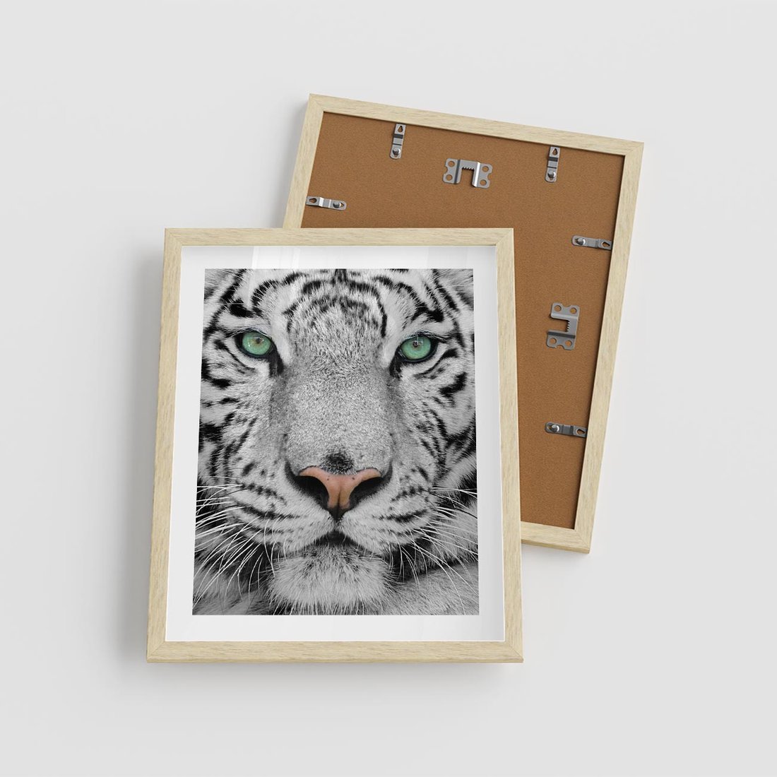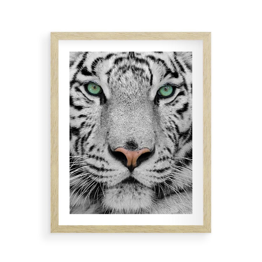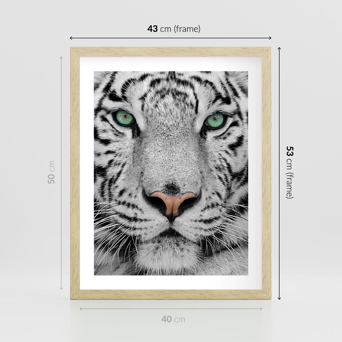 Plakat w ramie 40x50 - Magia Białego Tygrysa - biały, tygrys - rama drewno