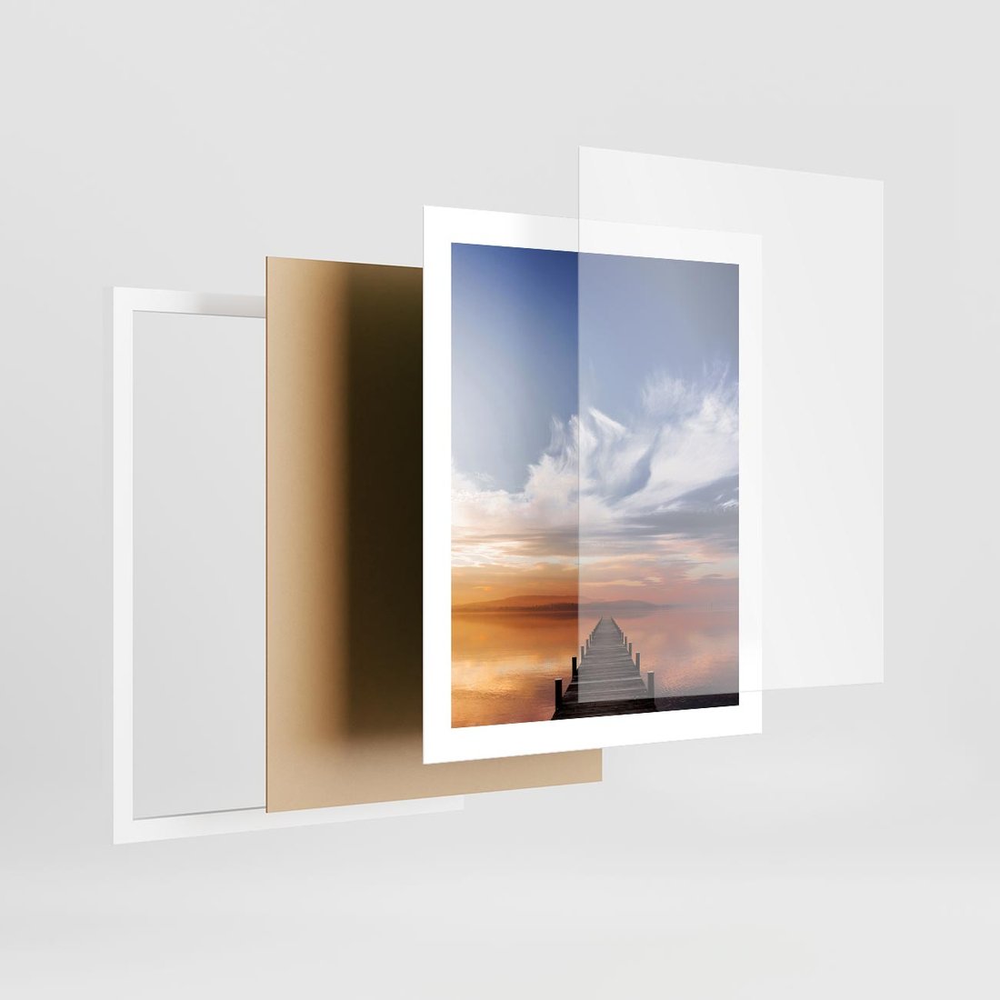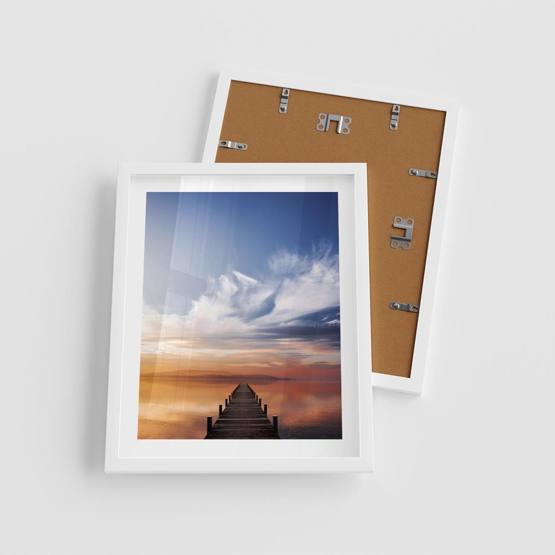 Plakat w ramie 40x50 - Magia Chwili - pomost, zachód - rama biała