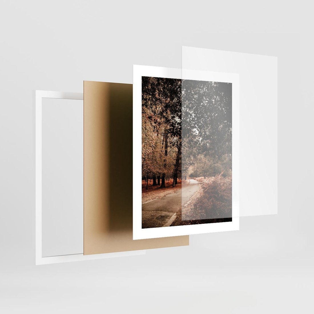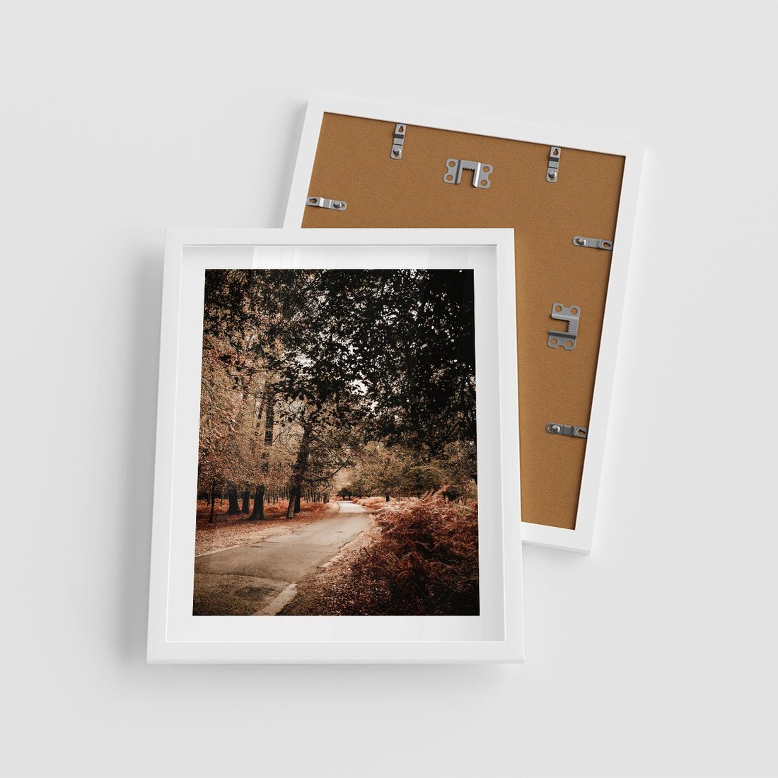 Plakat w ramie 40x50 - Magia Jesieni: Pejzaż Parku w Odcieniach Żółci - jesień, park - rama biała