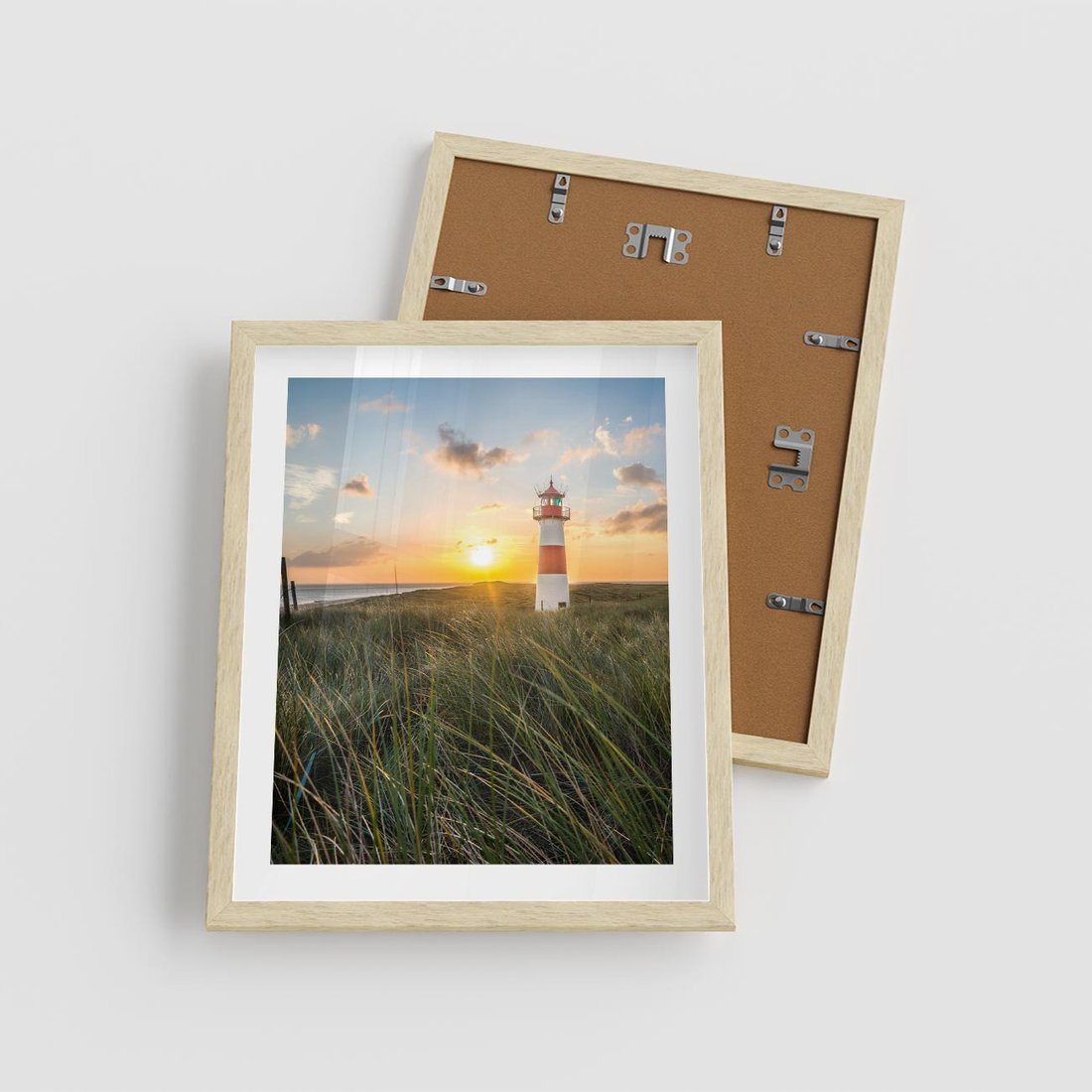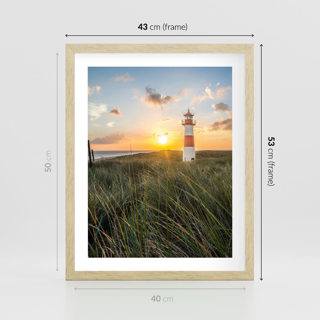 Plakat w ramie 40x50 - Magia latarni przy zachodzie - latarnia, zachód - rama drewno