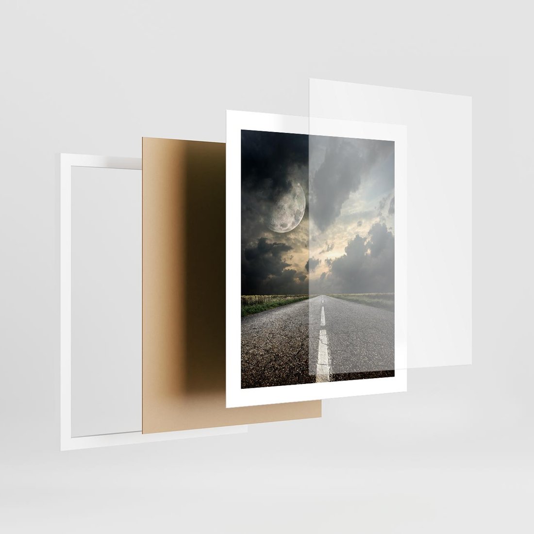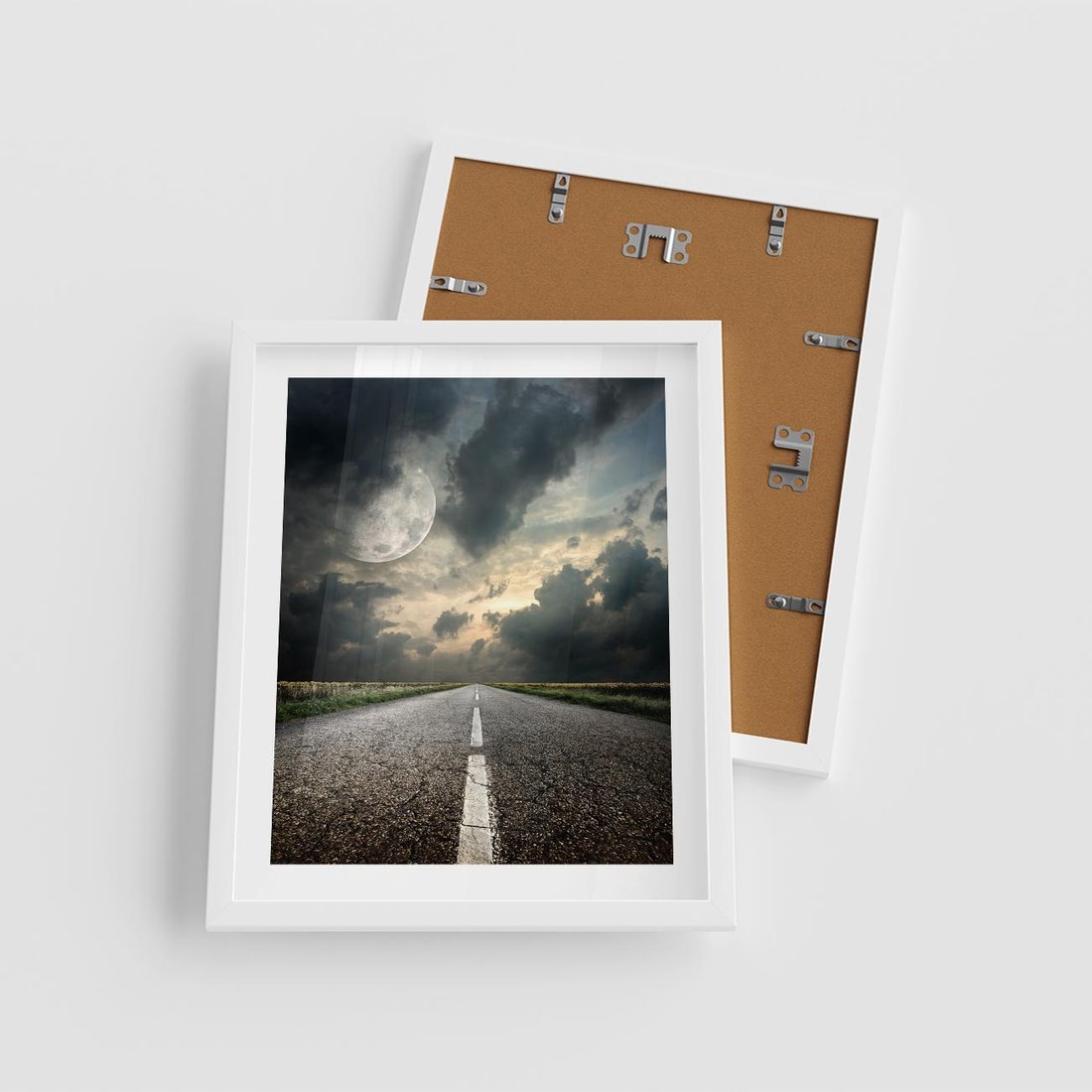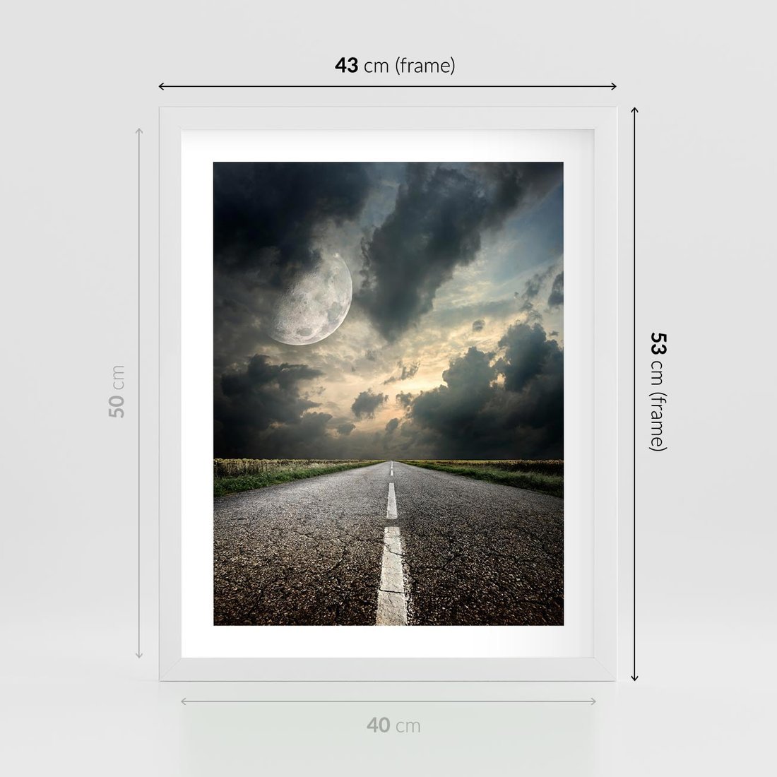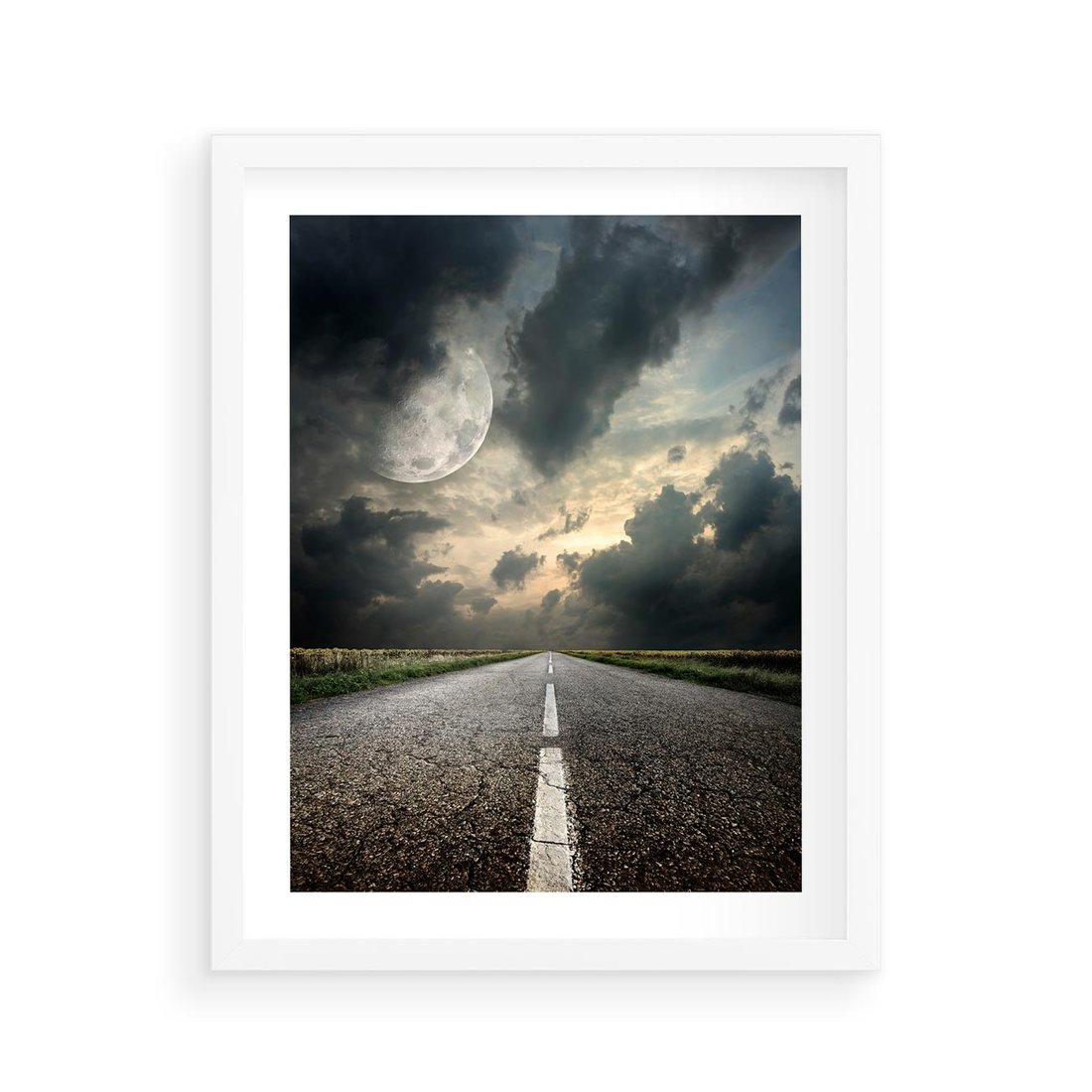 Plakat w ramie 40x50 - magia nocnej drogi - droga, księżyc - rama biała
