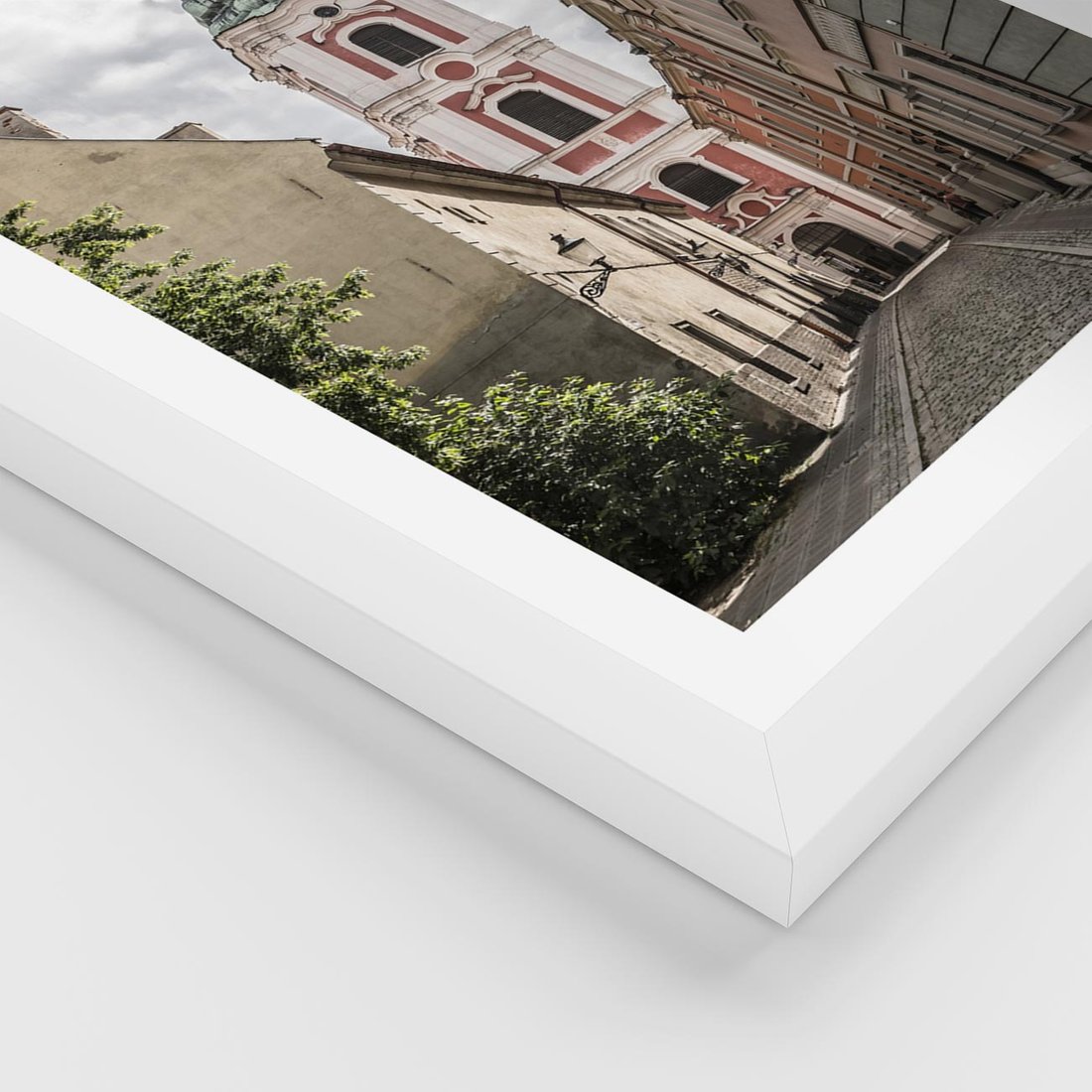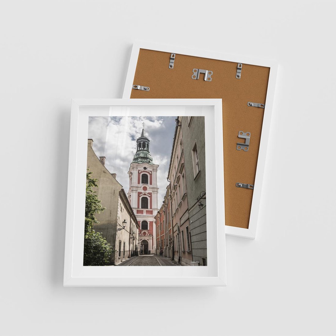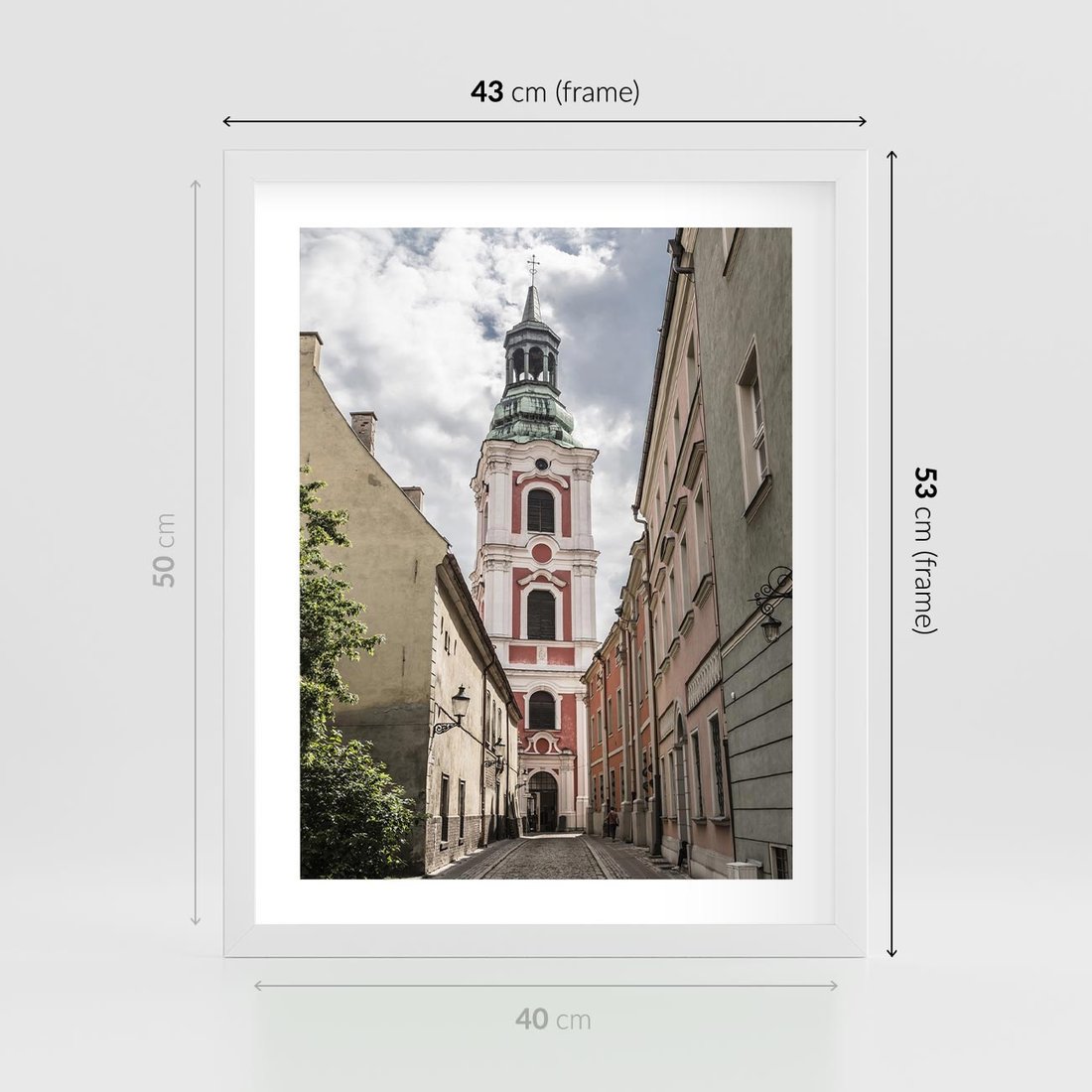 Plakat w ramie 40x50 - Magia perspektywy uliczki - uliczka, perspektywa - rama biała