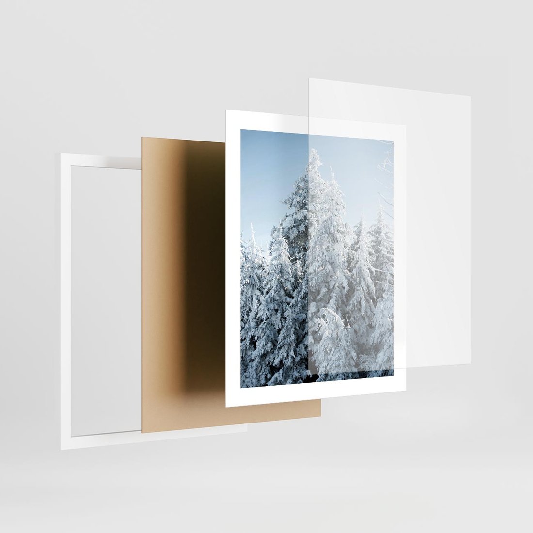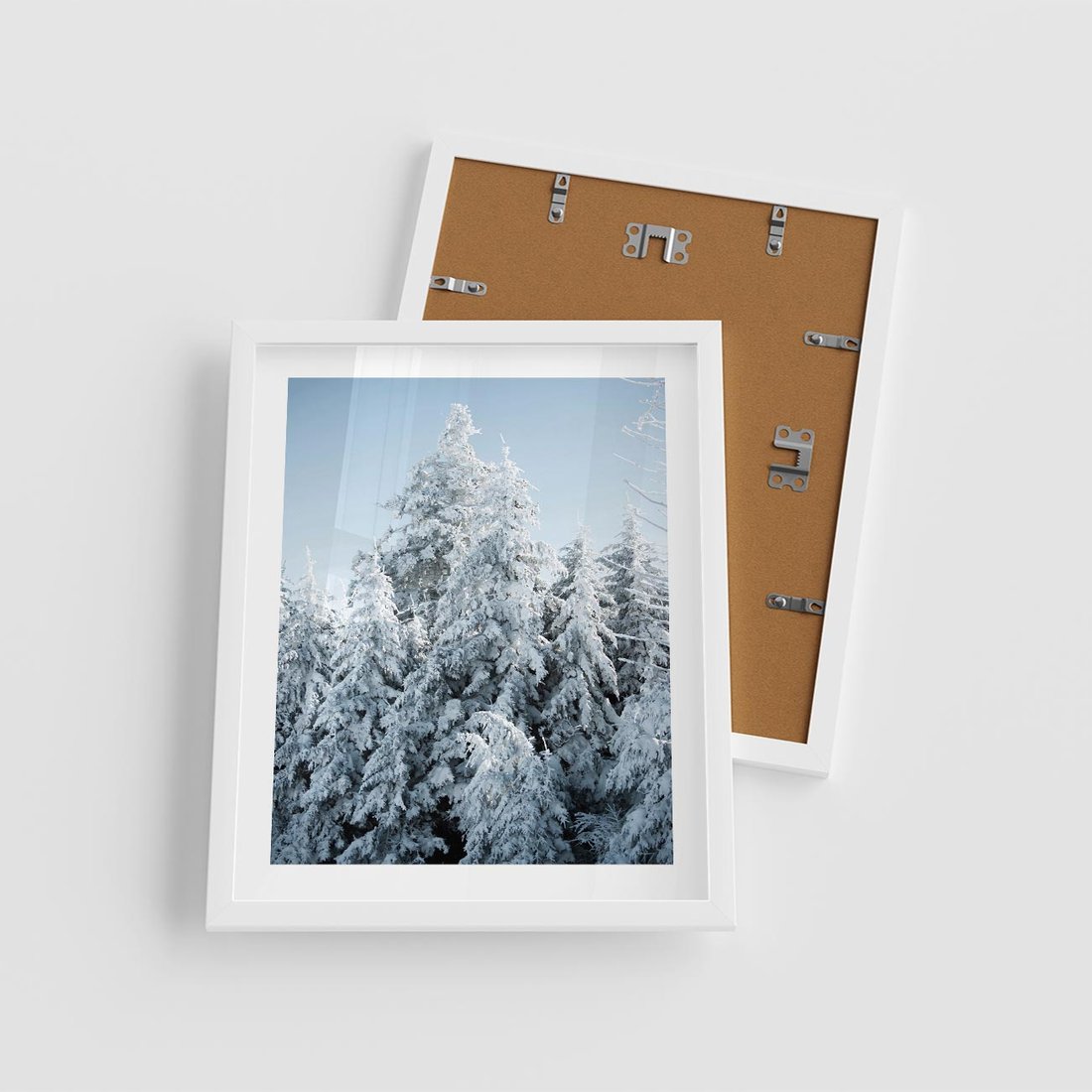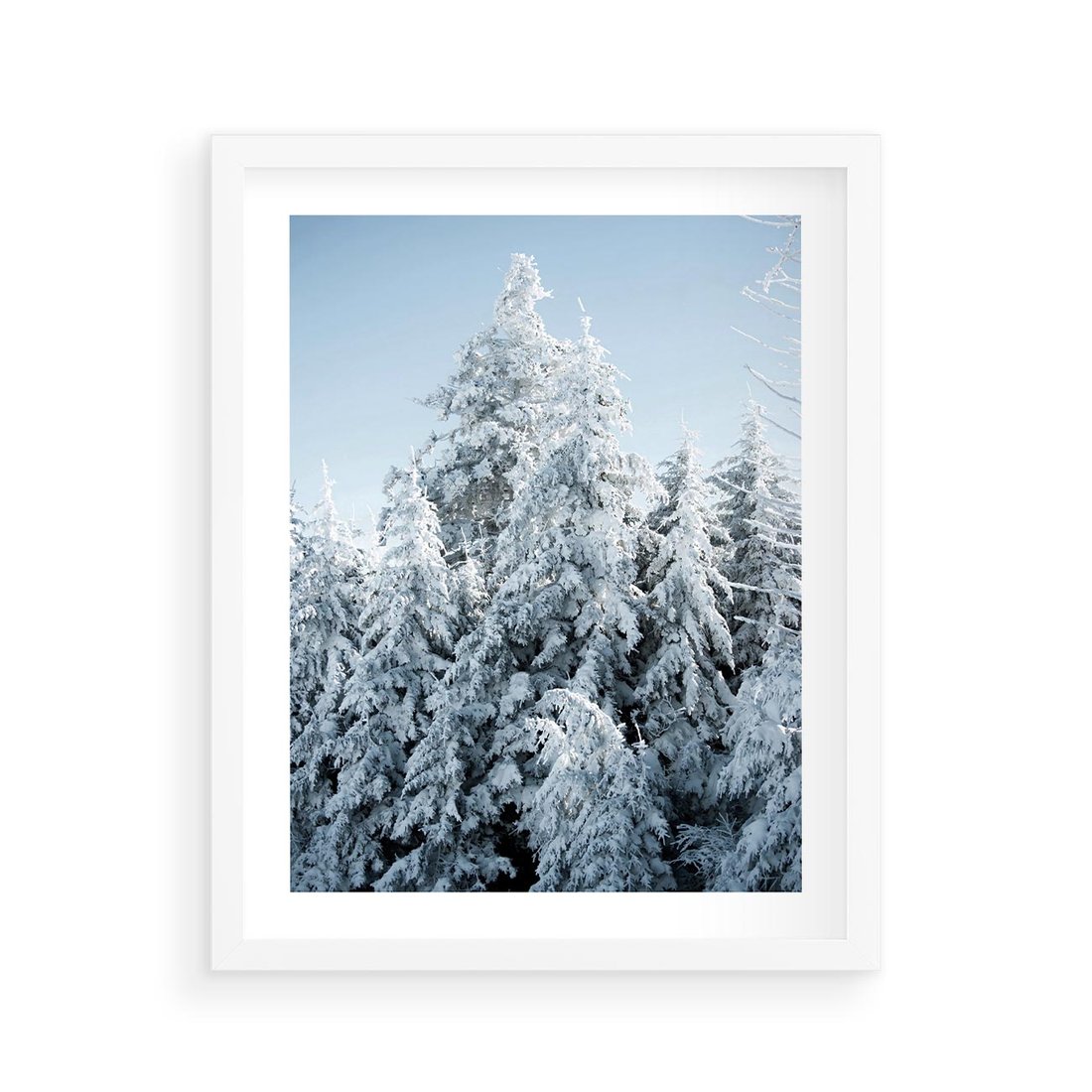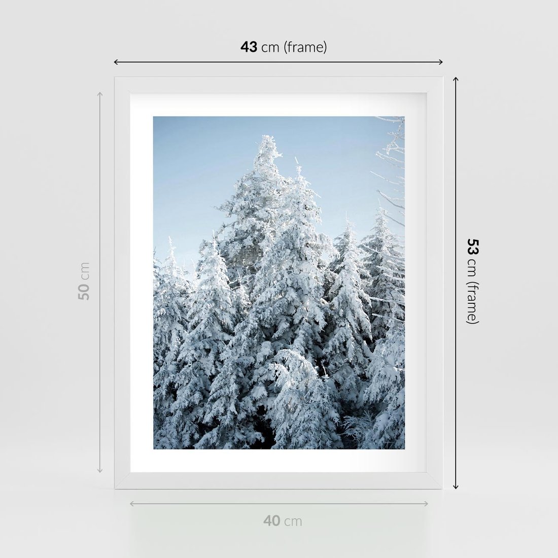 Plakat w ramie 40x50 - Magia Śnieżnych Drzew - zima, iglaste drzewa - rama biała