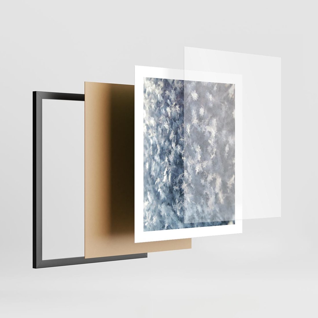 Plakat w ramie 40x50 - Magia Śnieżnych Kryształków - śnieg, szron - rama czarna