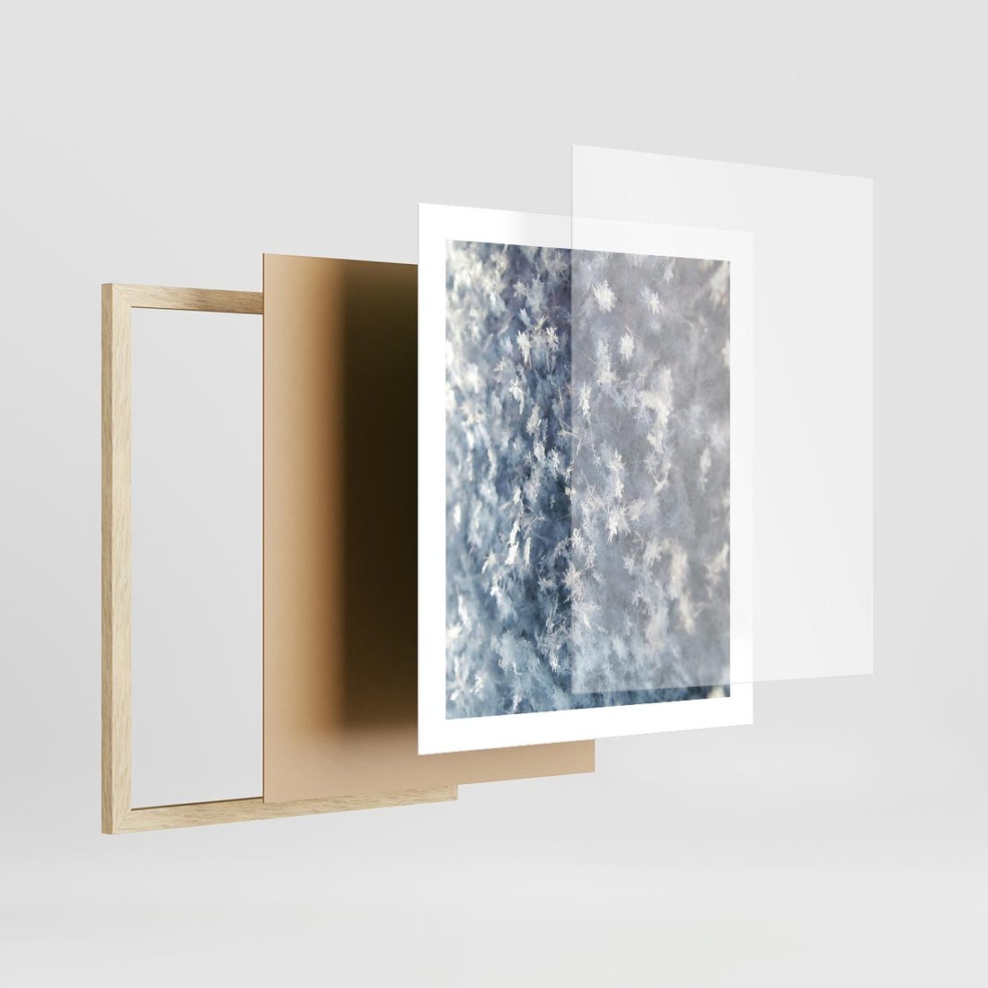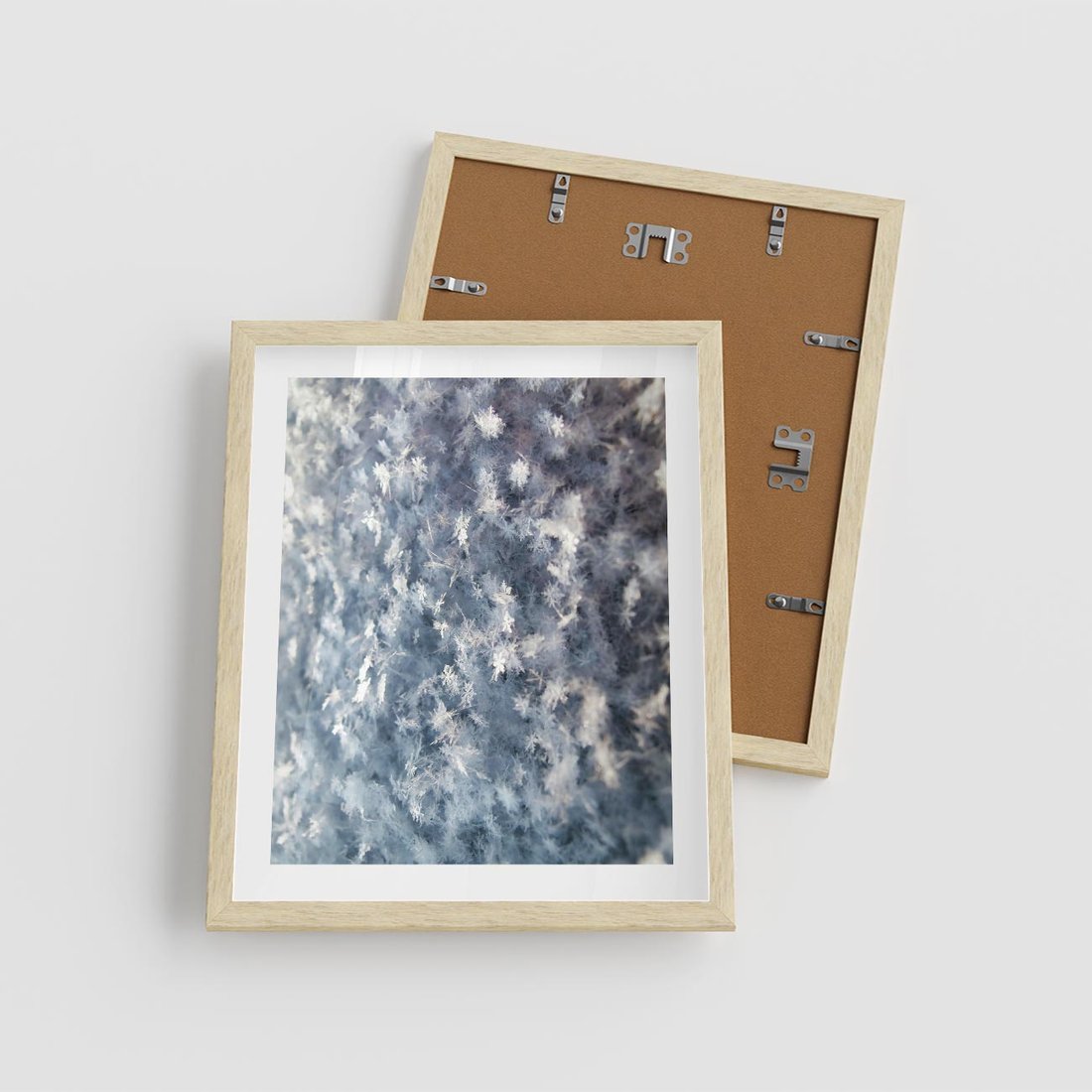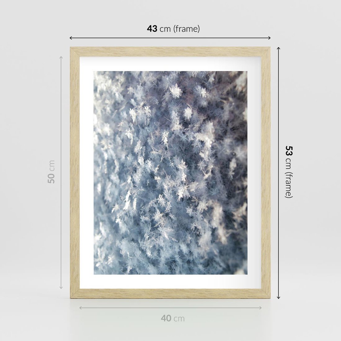 Plakat w ramie 40x50 - Magia Śnieżnych Kryształków - śnieg, szron - rama drewno