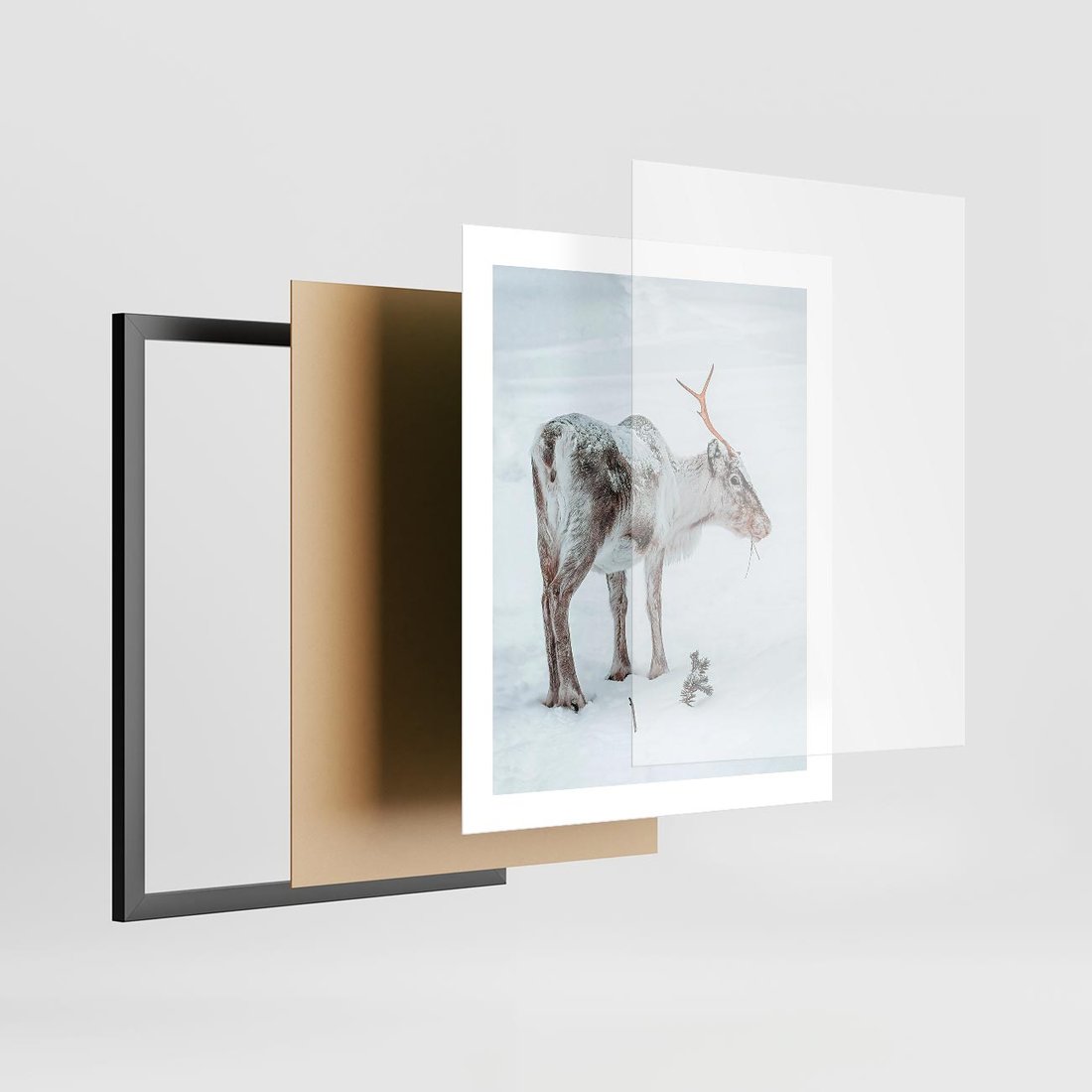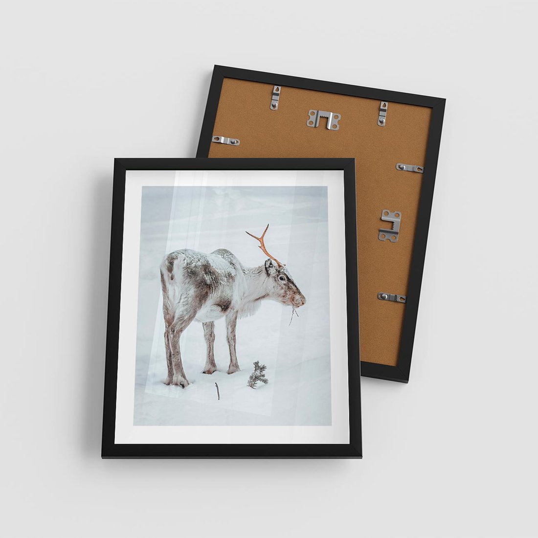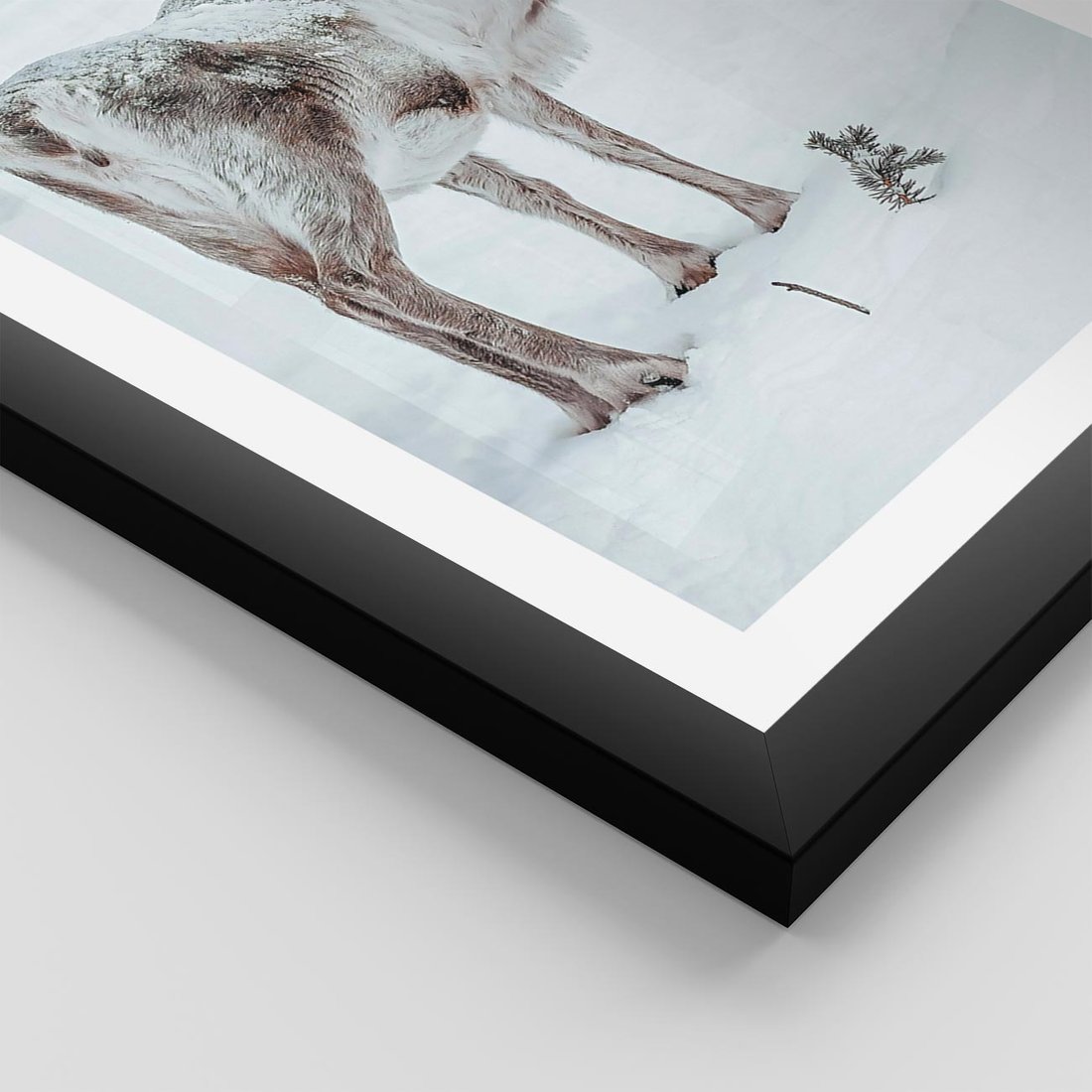 Plakat w ramie 40x50 - Magia Świąt - renifer na śniegu, śnieg - rama czarna