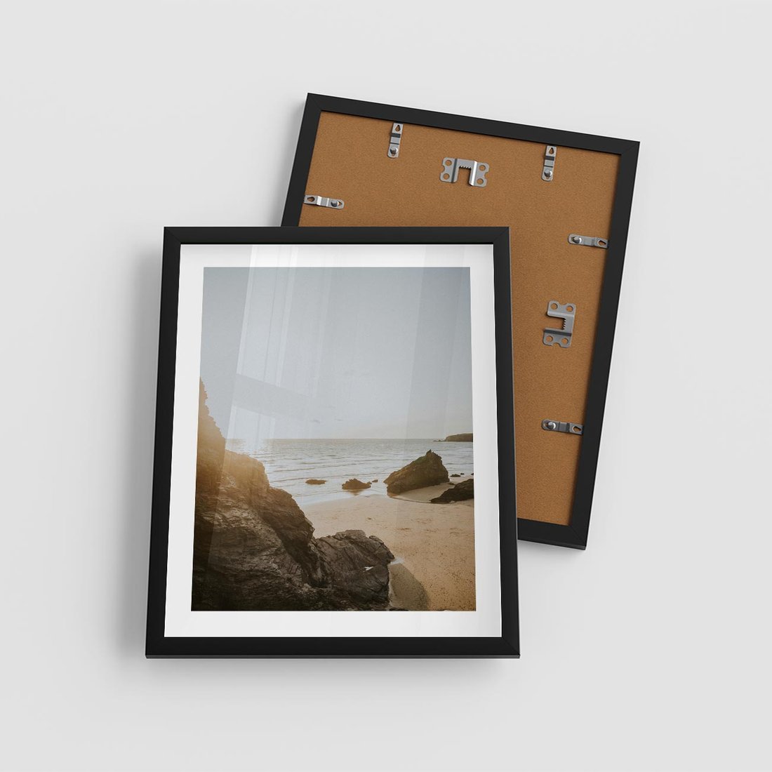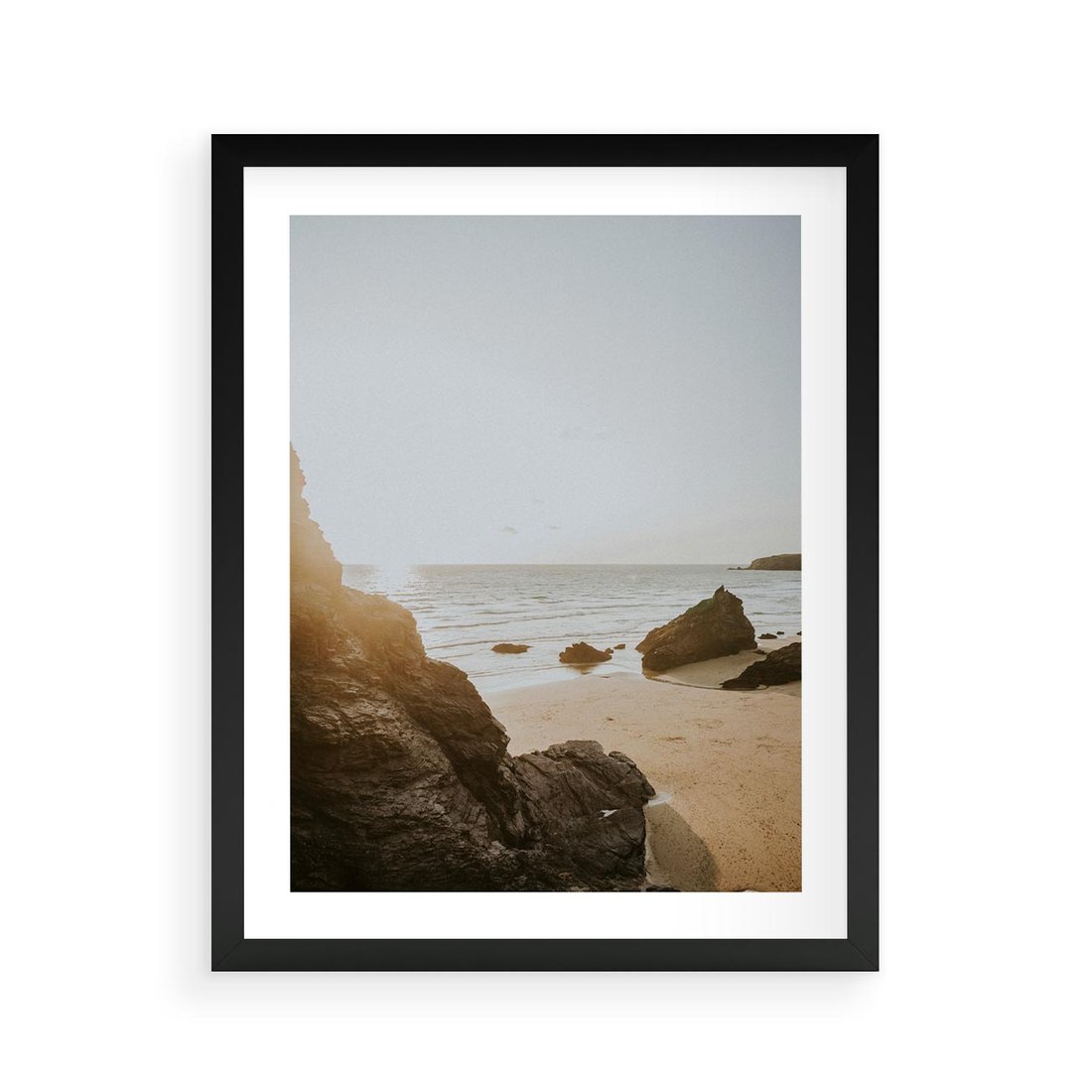 Plakat w ramie 40x50 - Magia Wieczornego Spokoju - plaża, zachód - rama czarna